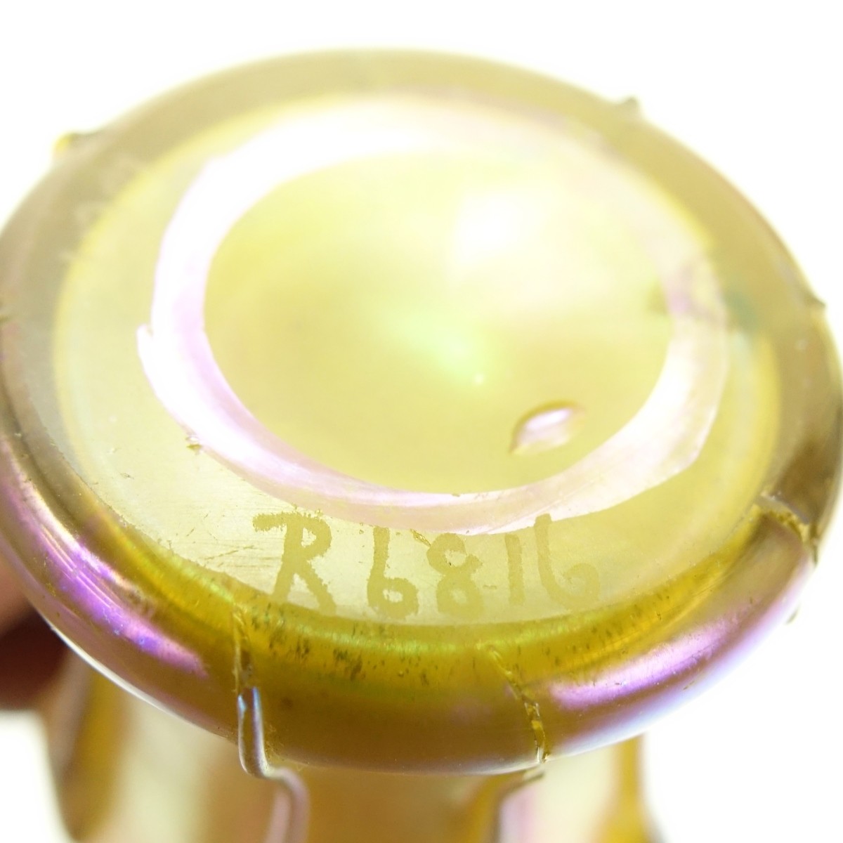 Tiffany Favrile Gold Iridescent Glass Miniature Vase. Signed L.C.T and numbered R6816 to base. Measures 4" H. Domestic Shipping: $34.00 Min Est. $150.00 Max Est. $250.00