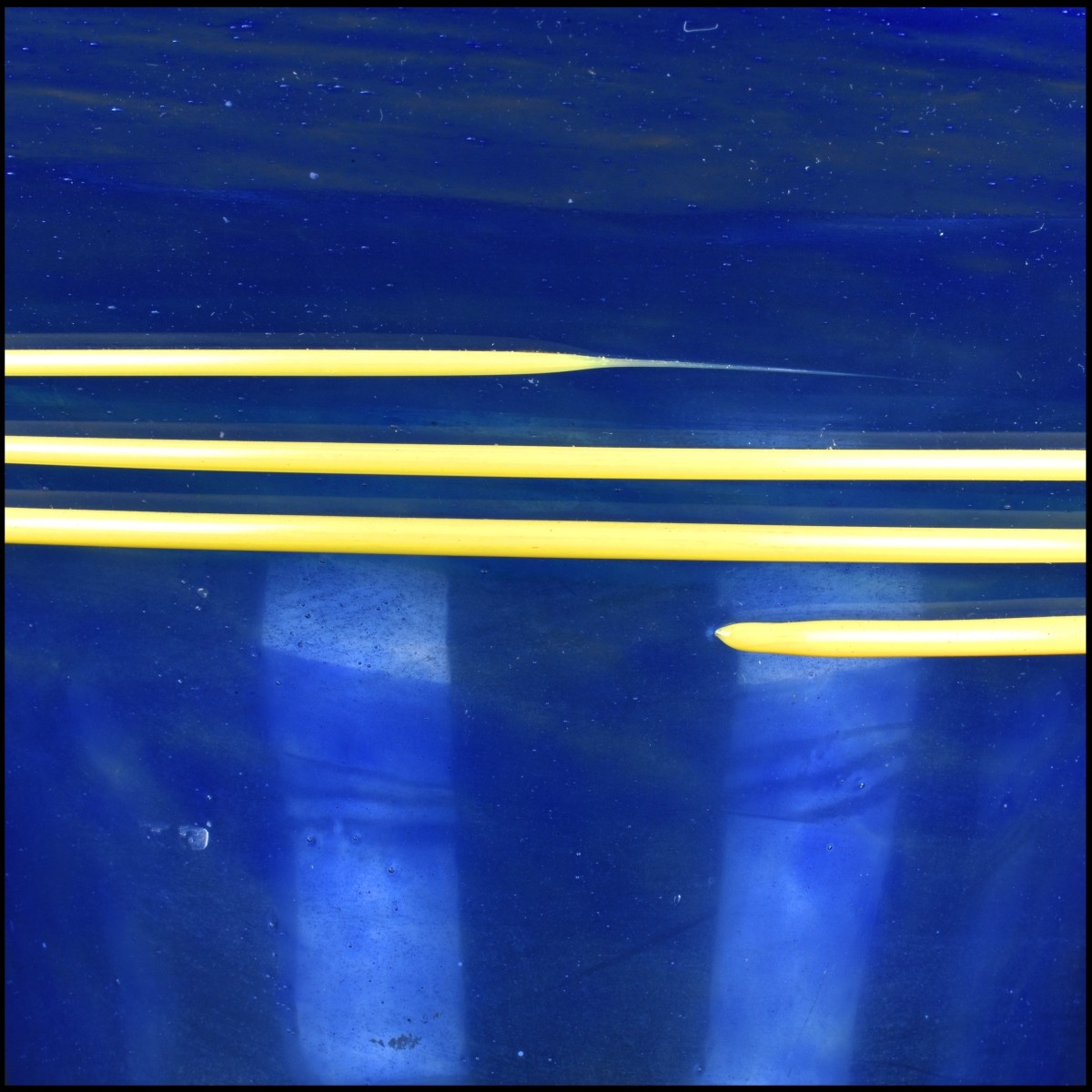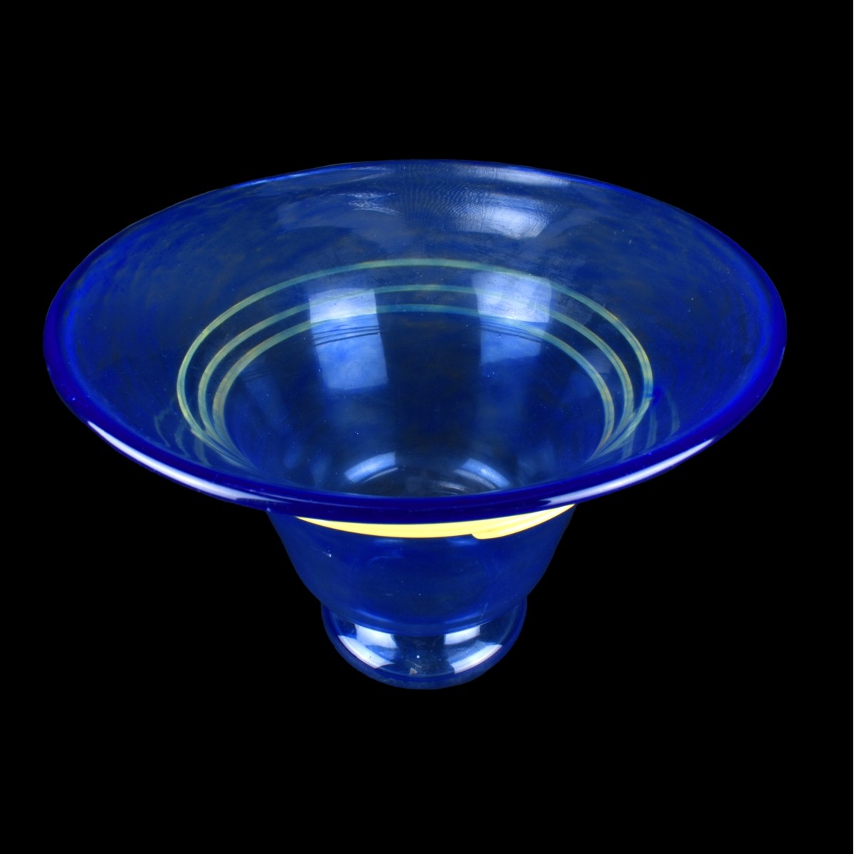 Charles Schneider Blue Art Glass Vase. Signed. Measures 10-3/8" H x 14-3/8" W. Domestic Shipping: Third party Min Est. $800.00 Max Est. $1200.00