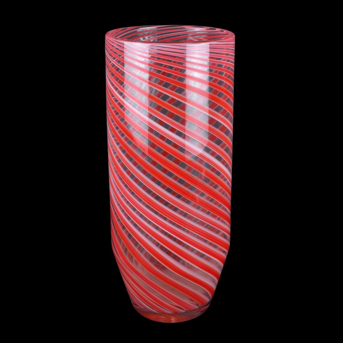 Grouping of Two (2) Large Murano Italian Art Glass Vases. Murano sticker label attached to one vase, unsigned. Tallest measures 13-5/8" H, other measures 11-1/4" H. Domestic Shipping: Third party Min Est. $300.00 Max Est. $400.00