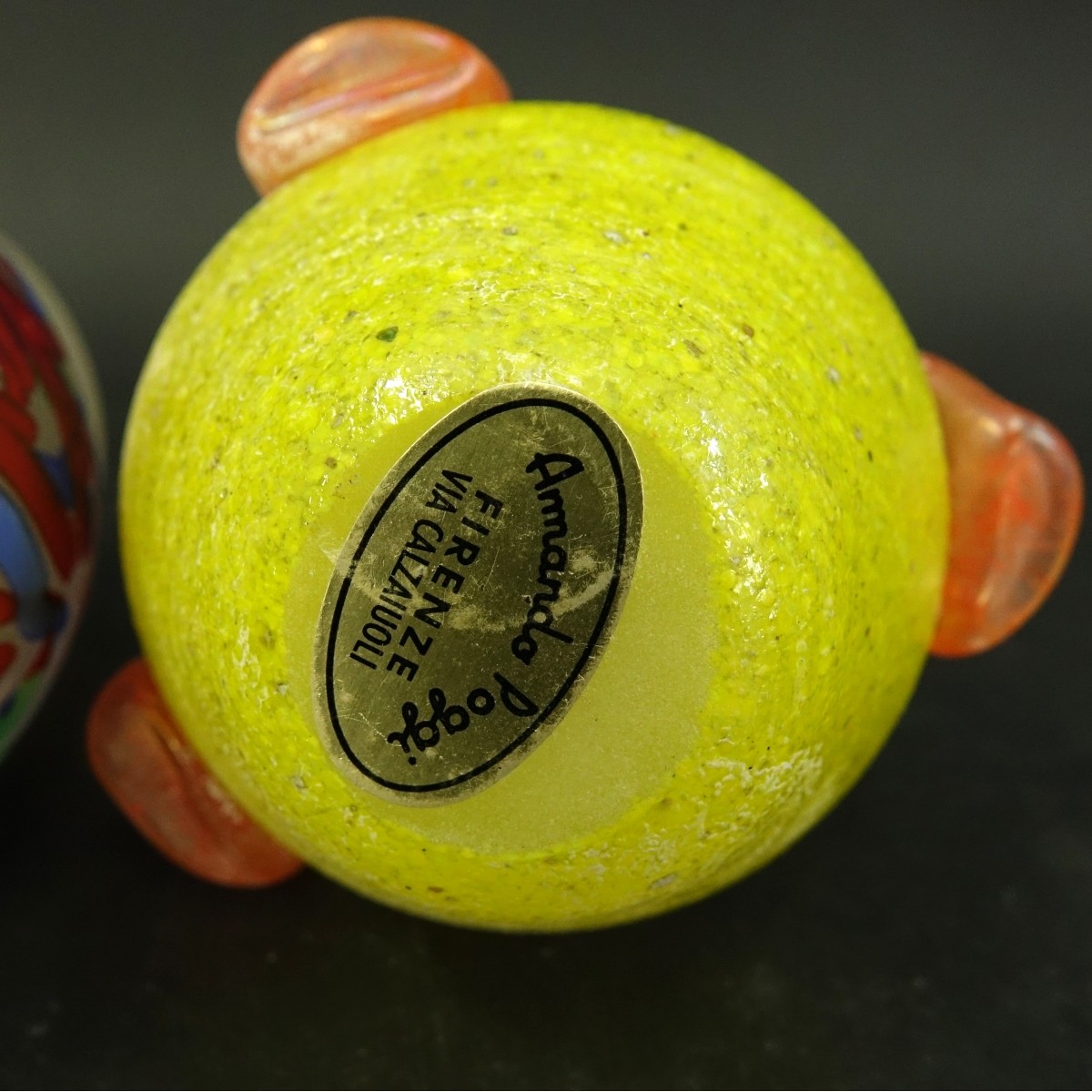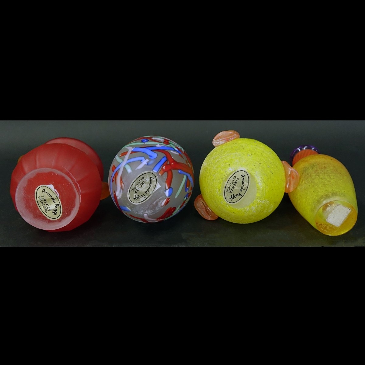 Grouping of Four (4) Vintage Murano Art Glass Miniature Vases. Three with Armando Poggi sticker label to base. Tallest measures 5-3/4" H, smallest measures 3-1/2" H. Domestic Shipping: $48.00 Min Est. $100.00 Max Est. $200.00