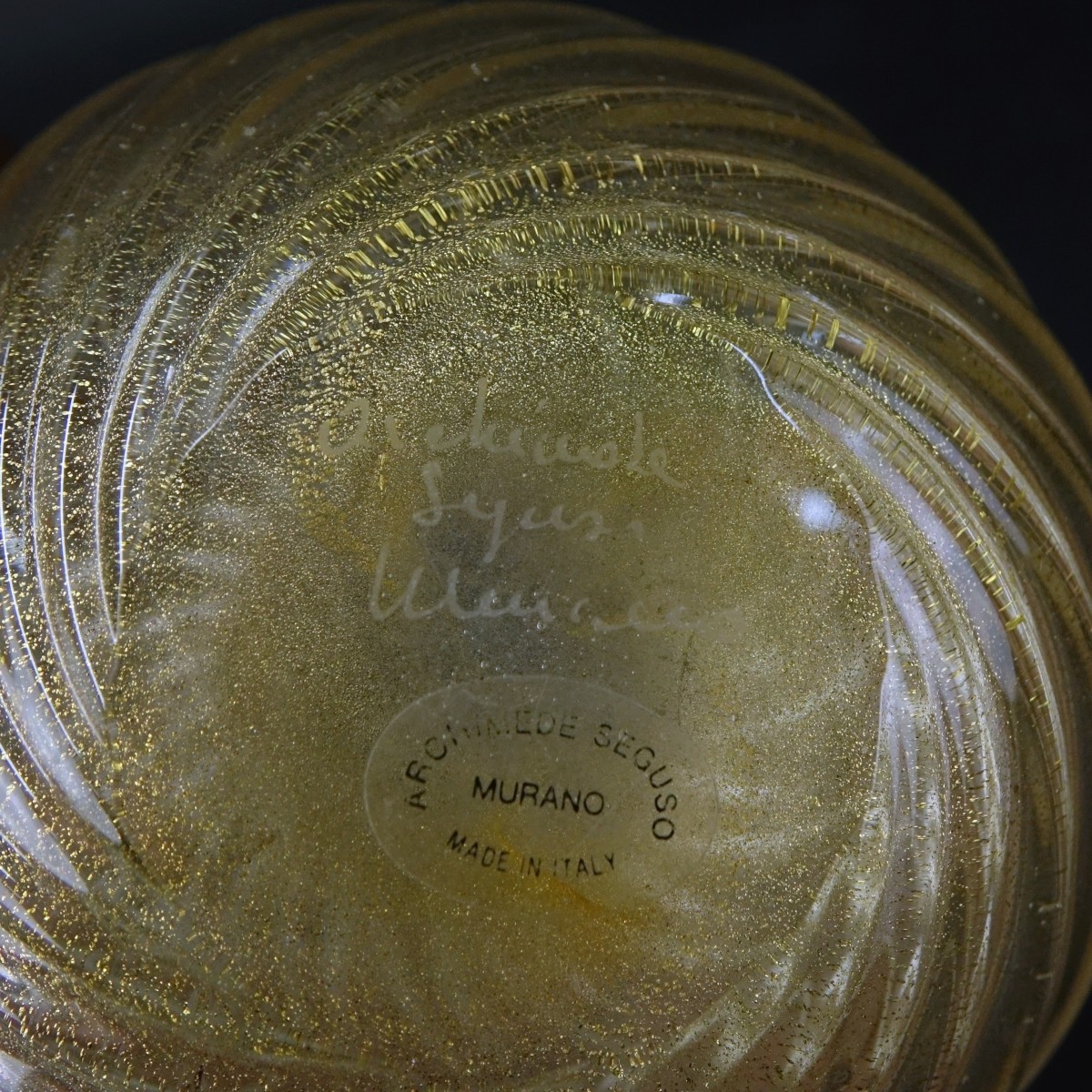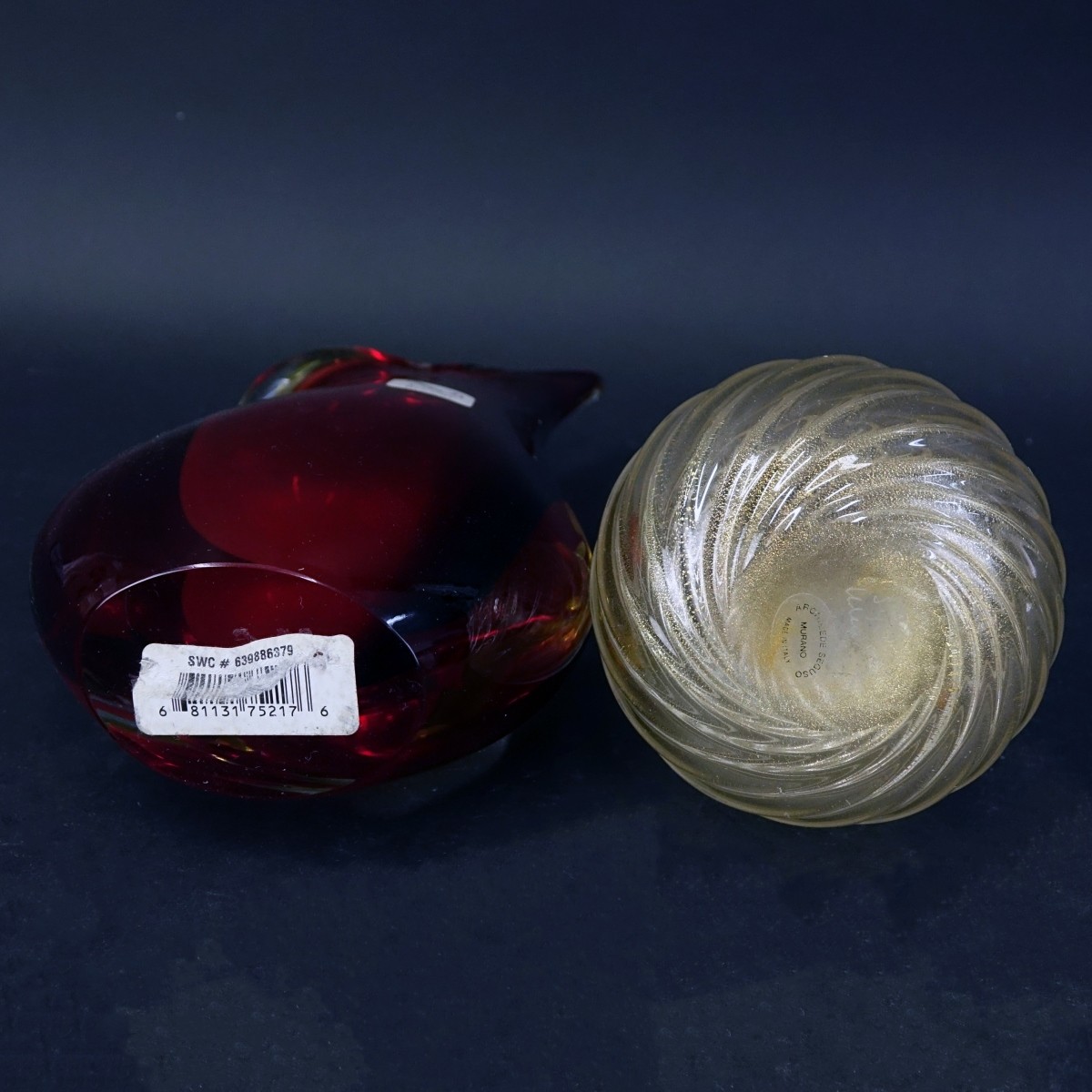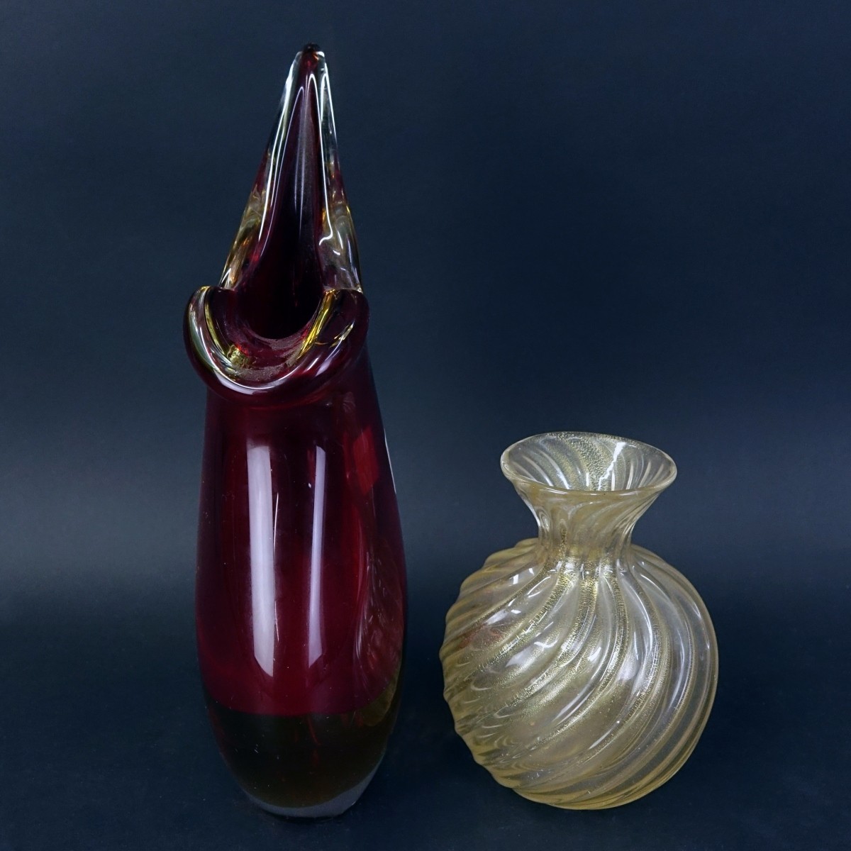 Two (2) Murano Art Glass Vases. Each appropriately signed, one is by Seguso other by Vetro Artistico. Tallest measures 11-3/4" H, smallest measures 6" H. Domestic Shipping: $78.00 Min Est. $150.00 Max Est. $250.00
