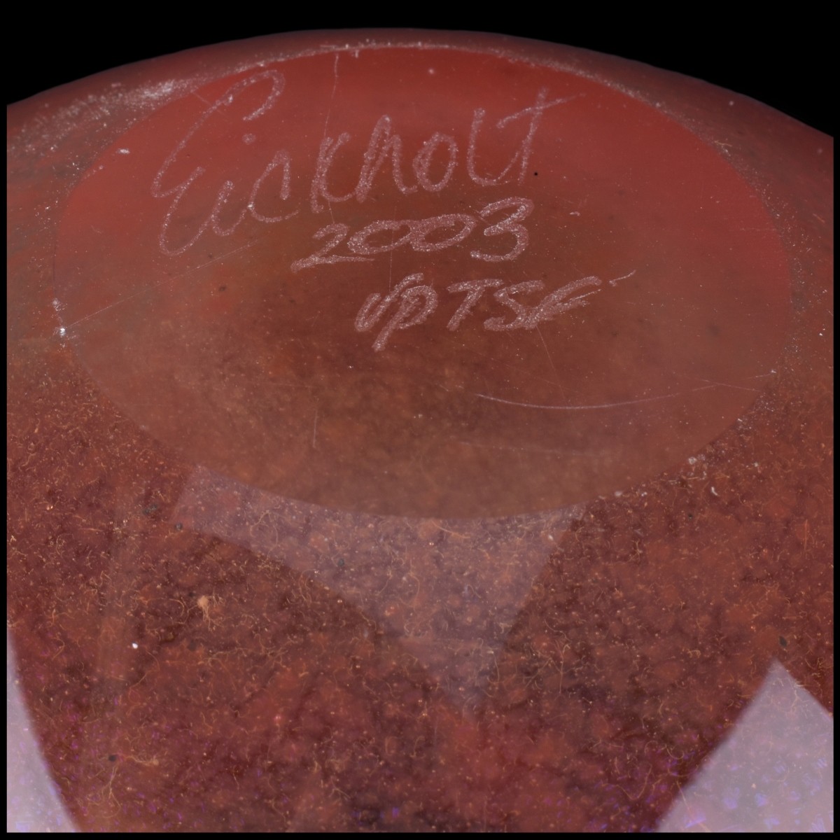 Three (3) Pieces Contemporary Art Glass. Signed Eickholt. Dated 2003, 1983, 1984. Tallest measures 6-5/8". Domestic Shipping: $85.00 Min Est. $100.00 Max Est. $200.00