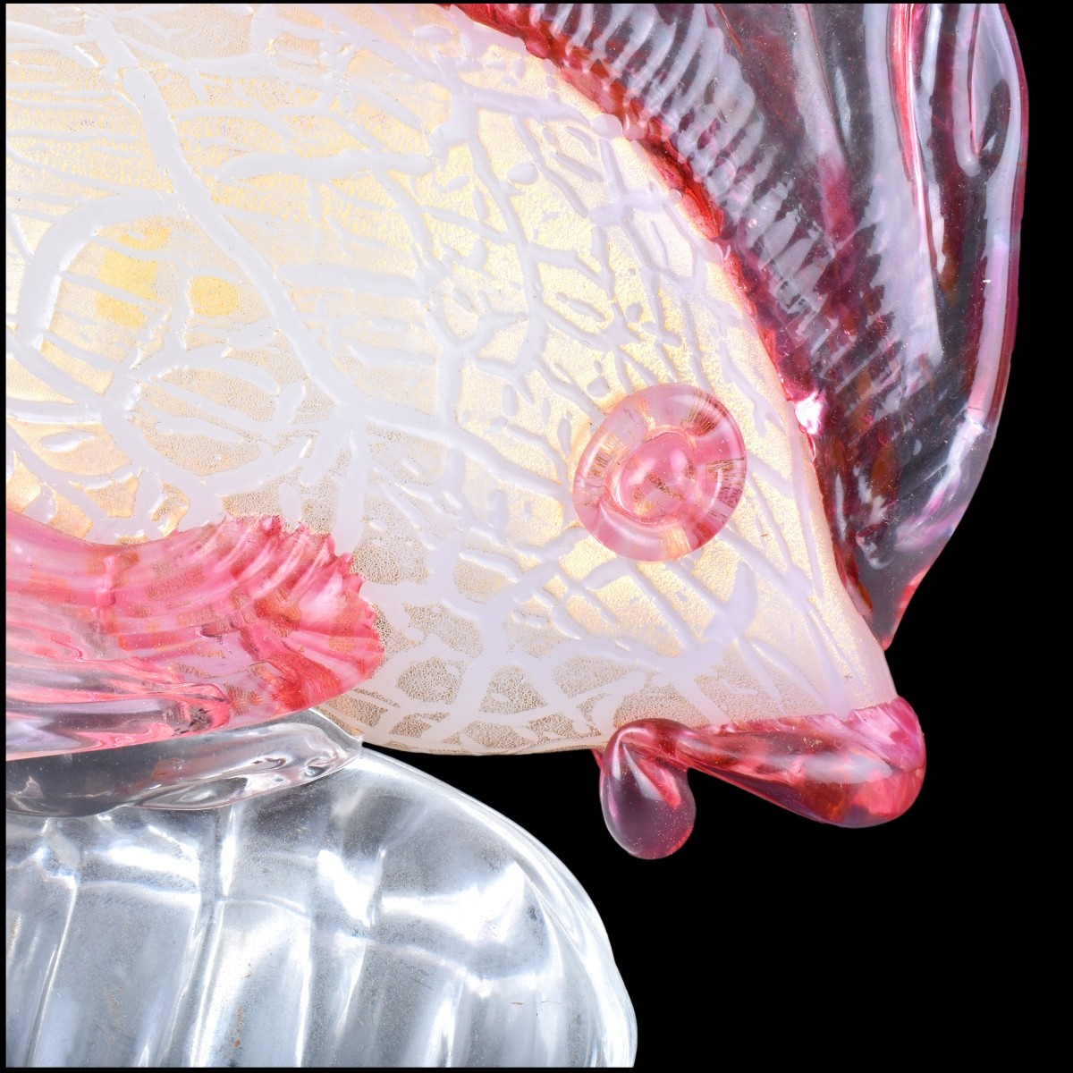 Two (2) Murano Glass Fish Figurines. Unsigned. Measures 9-1/2" H x 10-1/2" W. Domestic Shipping: $95.00 Min Est. $150.00 Max Est. $250.00