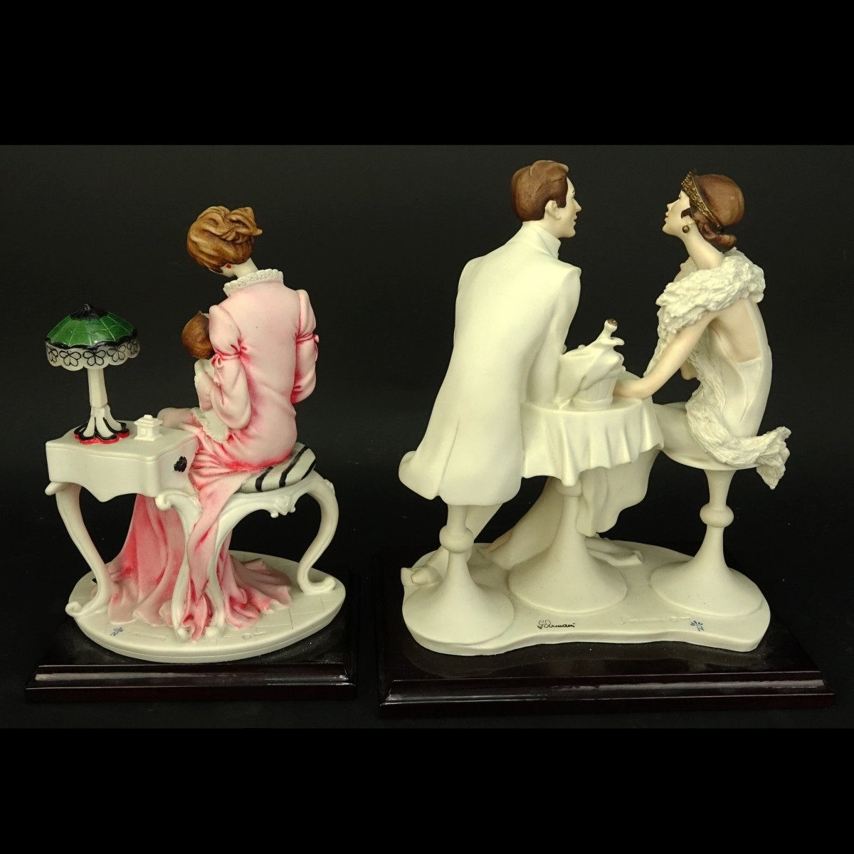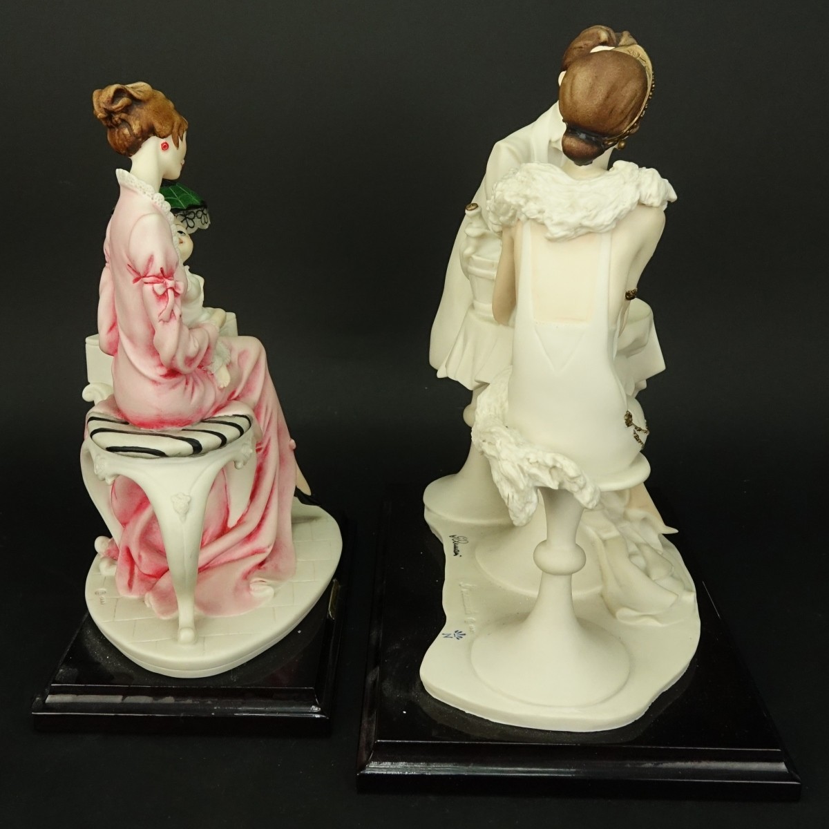 Two (2) Giuseppe Armani Polychrome Figurines. Each signed on obverse side. Largest measures 11-5/8" H, smallest measures 10-5/8" H. Domestic Shipping: Third party Min Est. $100.00 Max Est. $200.00