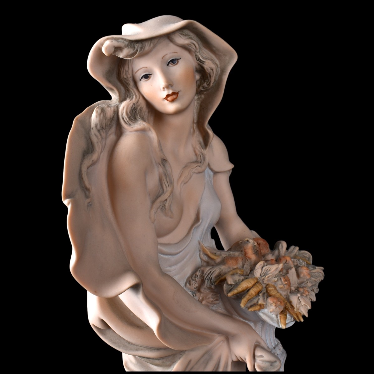 Three (3) Giuseppe Armani Figurines. Each depicting two young girls holding flowers and one holding amphora vessel. All signed on obverse side. Tallest measures 12-1/8" H, smallest measures 11-3/4" H. Domestic Shipping: $95.00 Min Est. $150.00 Max Est. $250.00
