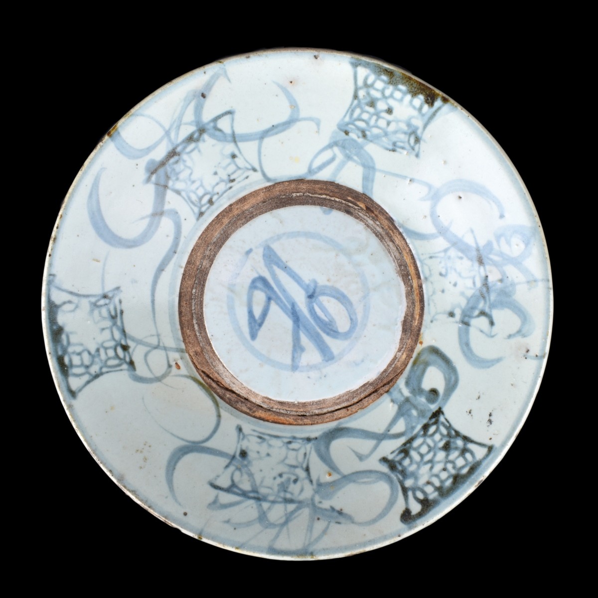 Grouping of Three (3) Antique Chinese Ming Pottery Tableware. Includes: plate, miniature vase, and small dish. Plate measures 2-3/8" H x 10-1/2" W, dish measures 1-1/4" H x 4-7/8" W. Domestic Shipping: $72.00 Min Est. $200.00 Max Est. $400.00