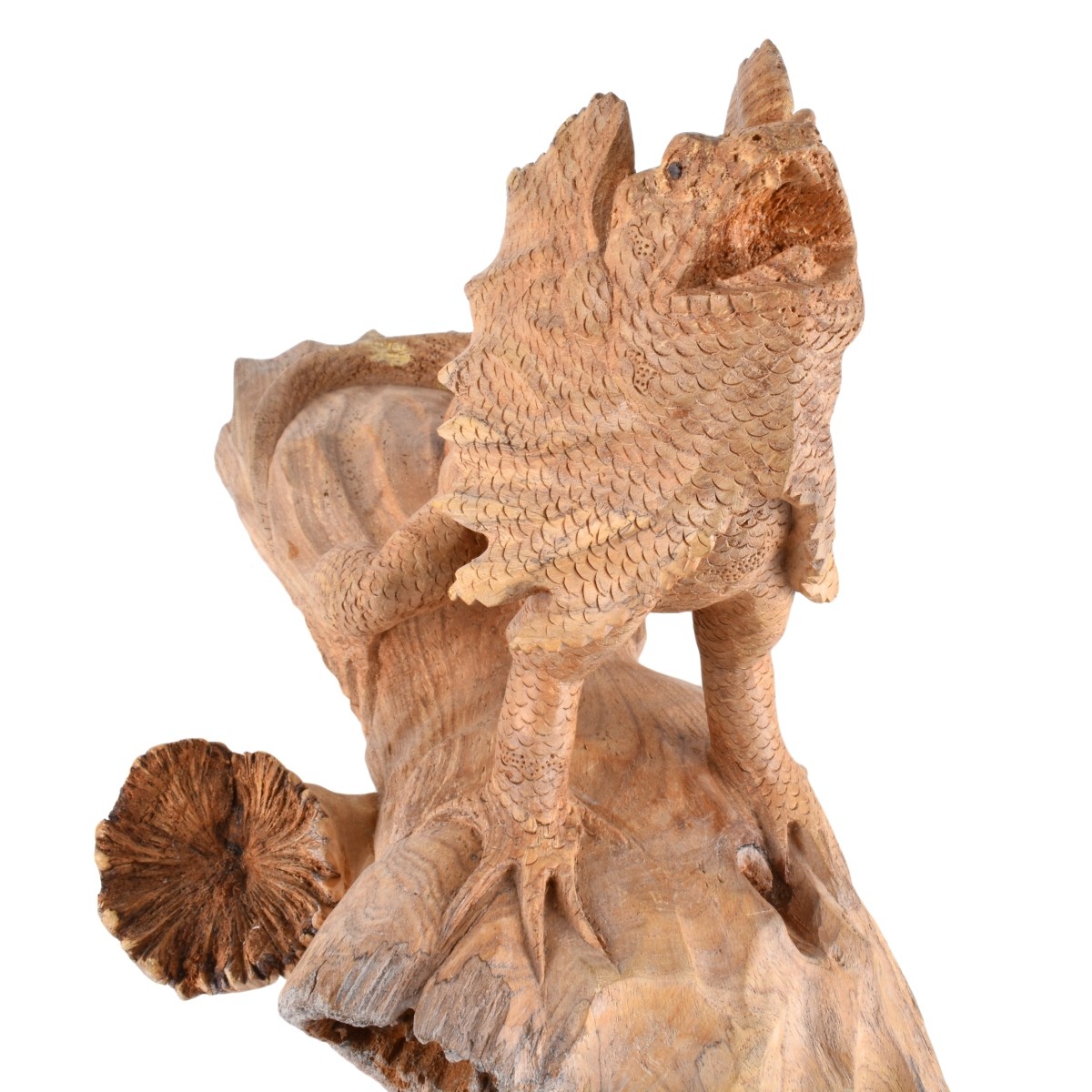Two (2) Carved Wood Lizard Sculptures. Unsigned. Larger measures 10-1/2" H x 14" L x 8" D. Domestic Shipping: $75.00 Min Est. $100.00 Max Est. $150.00