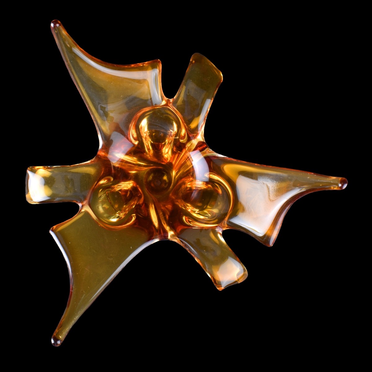 Three (3) Vintage Murano Free Form Art Glass Vases. Unsigned. Largest measures 11" H x 9" W. Domestic Shipping: Third party Min Est. $100.00 Max Est. $150.00