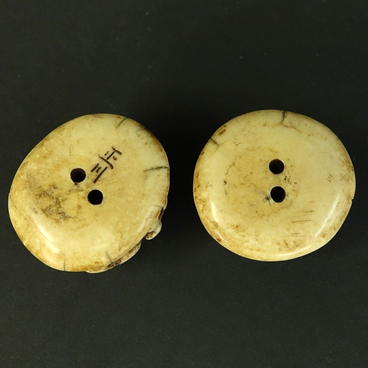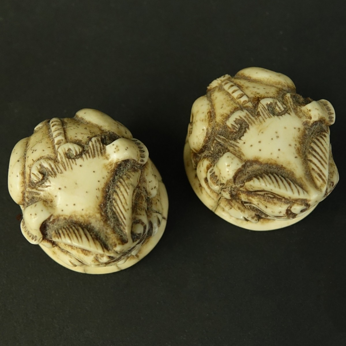 Pair of Japanese Carved Ivory Foo Dog Netsukes