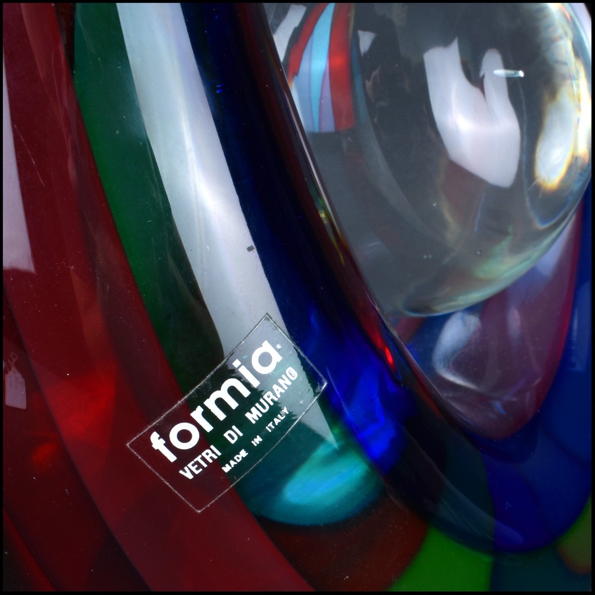 Mid Century Formia for Murano Italian Art Glass Abstract Centerpiece Sculpture. Unsigned, original label attached to surface. Measures 16" H x 11-3/4" W. Domestic Shipping: Third party Min Est. $300.00 Max Est. $500.00
