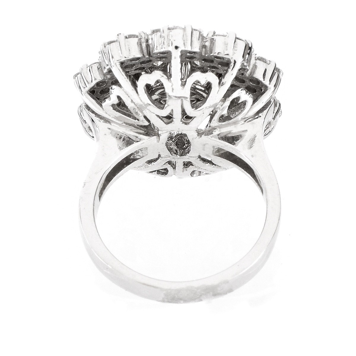 Approx. 5.50 Carat TW Diamond and 18 Karat White Gold Cluster Ring. Set with 4.0 Carat Fancy Light Yellow Round Brilliant Cut Diamonds VS2-SI1 clarity and 1.50 Carat Round Brilliant Cut White Diamonds G-H Color, VS2-SI1 Clarity. Stamped 18K. Ring size 7. Approx. weight: 15.3 grams. Condition: Very good condition. Domestic Shipping: $28.00 Min Est. $3000.00 Max Est. $4000.00