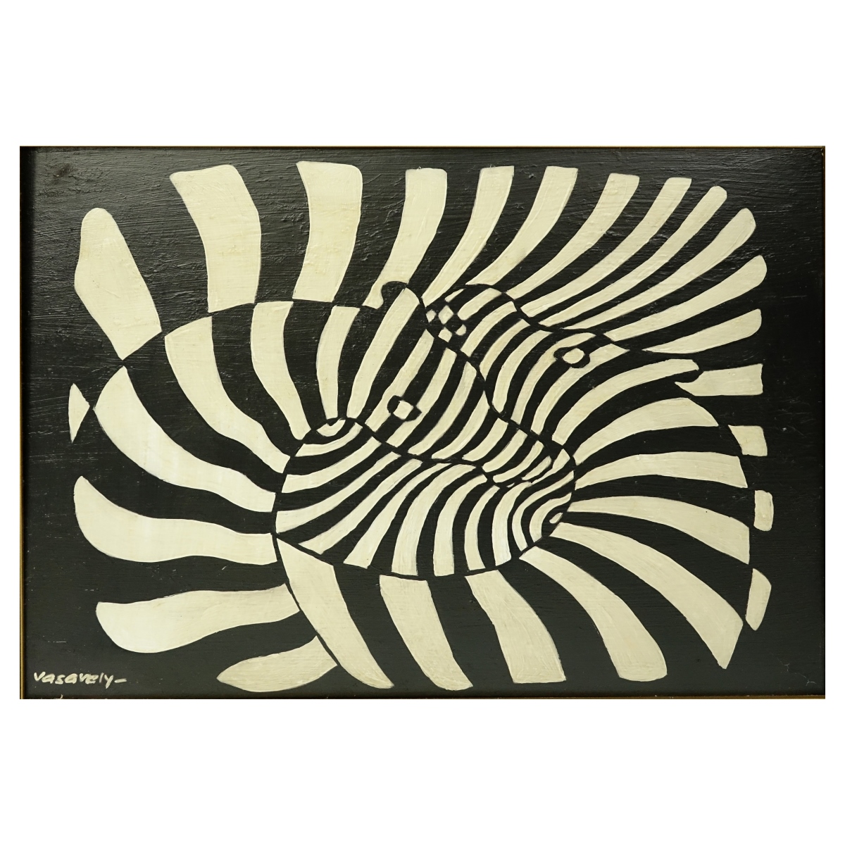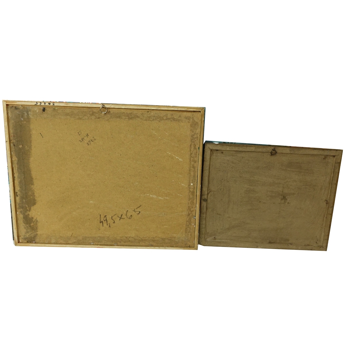 Grouping of Two (2) Vintage Oil Paintings on Board: After Victor Vasarely "Zebra" and After Franz Marc "Red Horses". Each signed lower. Largest measures 21" H x 26-7/8" W, smallest measures 15-1/2" H x 19-1/2" W. Condition: Red horse has a small scratch to surface otherwise good condition Estimate: $100.00 - $150.00 Domestic Shipping: Third party
