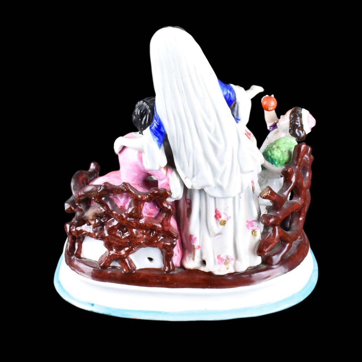 Antique Porcelain Figural Inkwell. Unsigned and numbered to base. Measures 8-1/2" H x 8-3/4" W. Condition: Repairs, as is condition Estimate: $50.00 - $100.00 Domestic Shipping: Third party