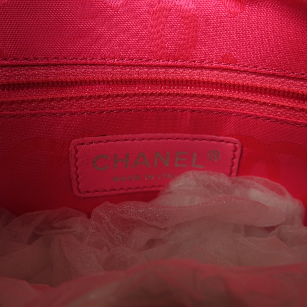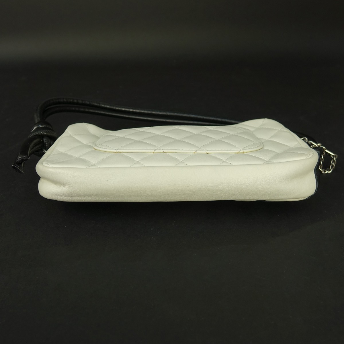 Chanel White Quilted Leather Rectangular Pouch With Logo. Hot pink fabric interior, silver tone hardware, black strap. Labeled appropriately, serial #8947078. Measures 9" x 5-1/2" x 1-1/4". Condition: Pre-owned gently used condition with some ink marks on interior and light soiling on exterior. Estimate: $500.00 - $600.00 Domestic Shipping: $42.00