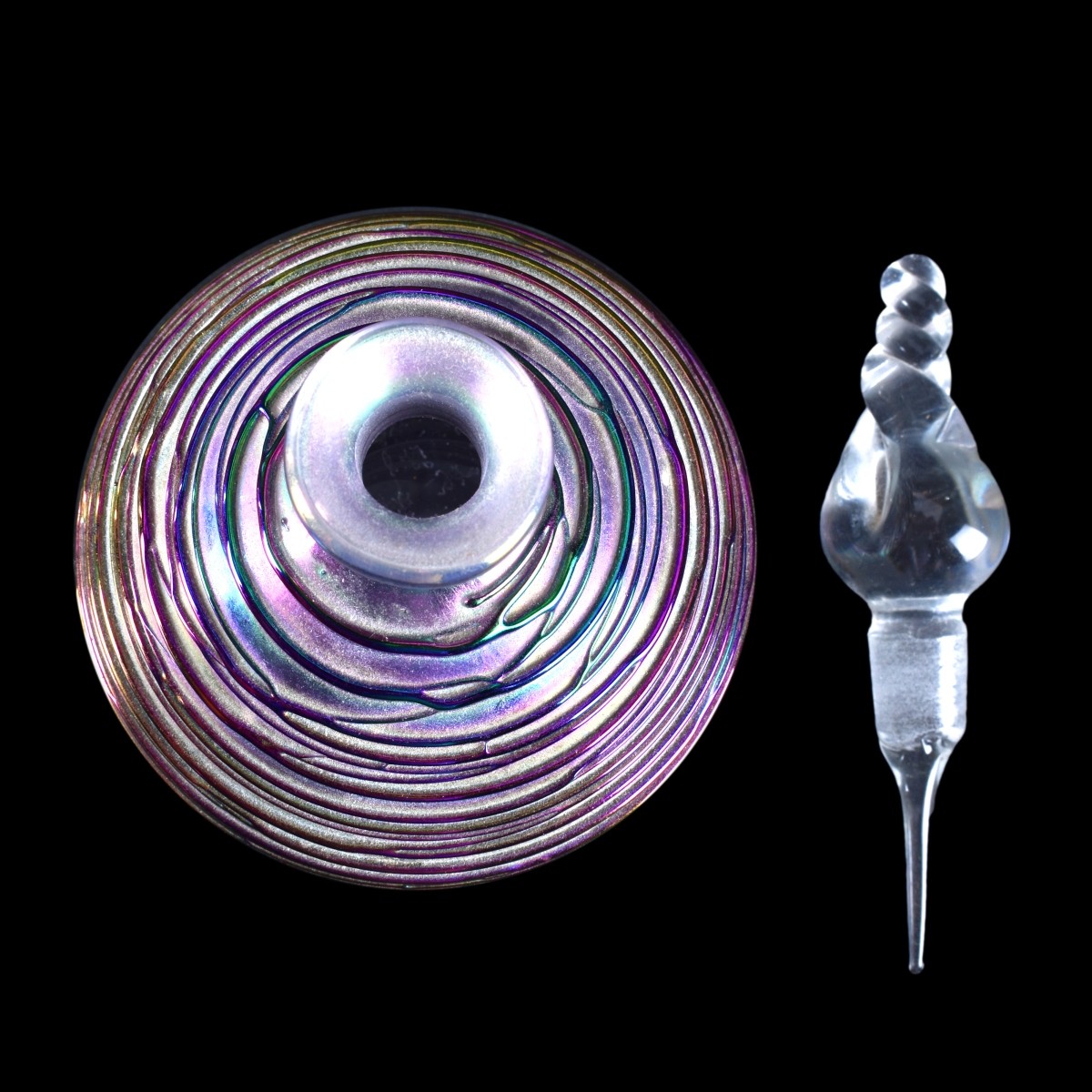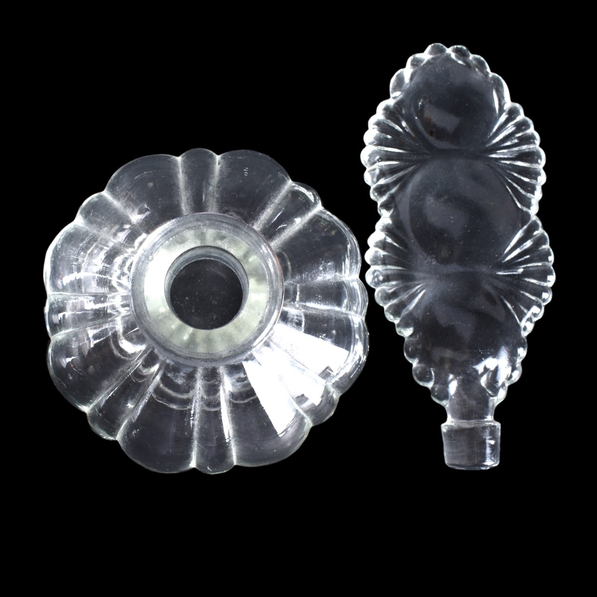 Three (3) Vintage Perfume Bottles. Consisting of two glass and one made of crystal. All unsigned. Tallest measures 7-1/4" H, smallest measurers 5-1/4" H. Condition: Good condition Estimate: $50.00 - $100.00 Domestic Shipping: $45.00