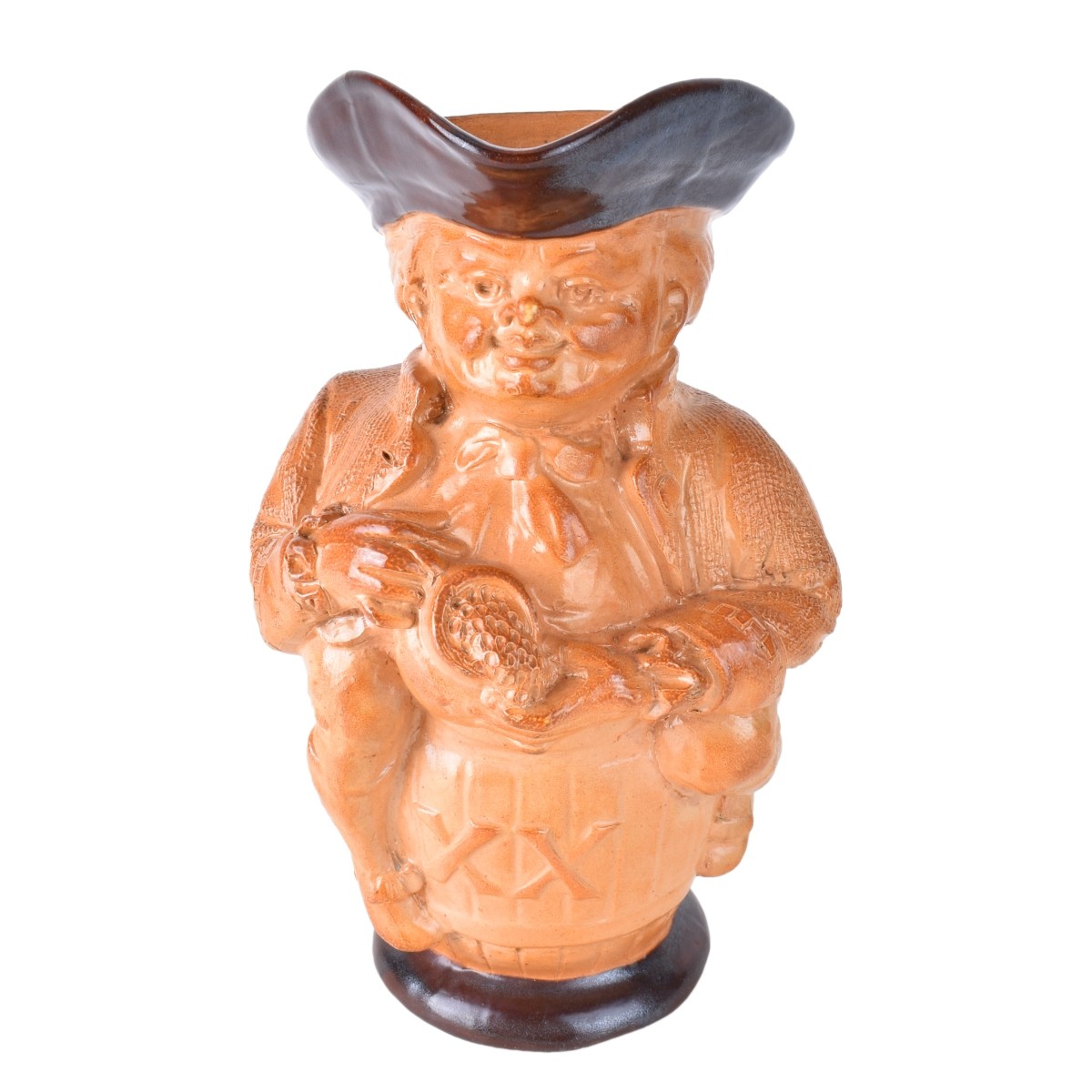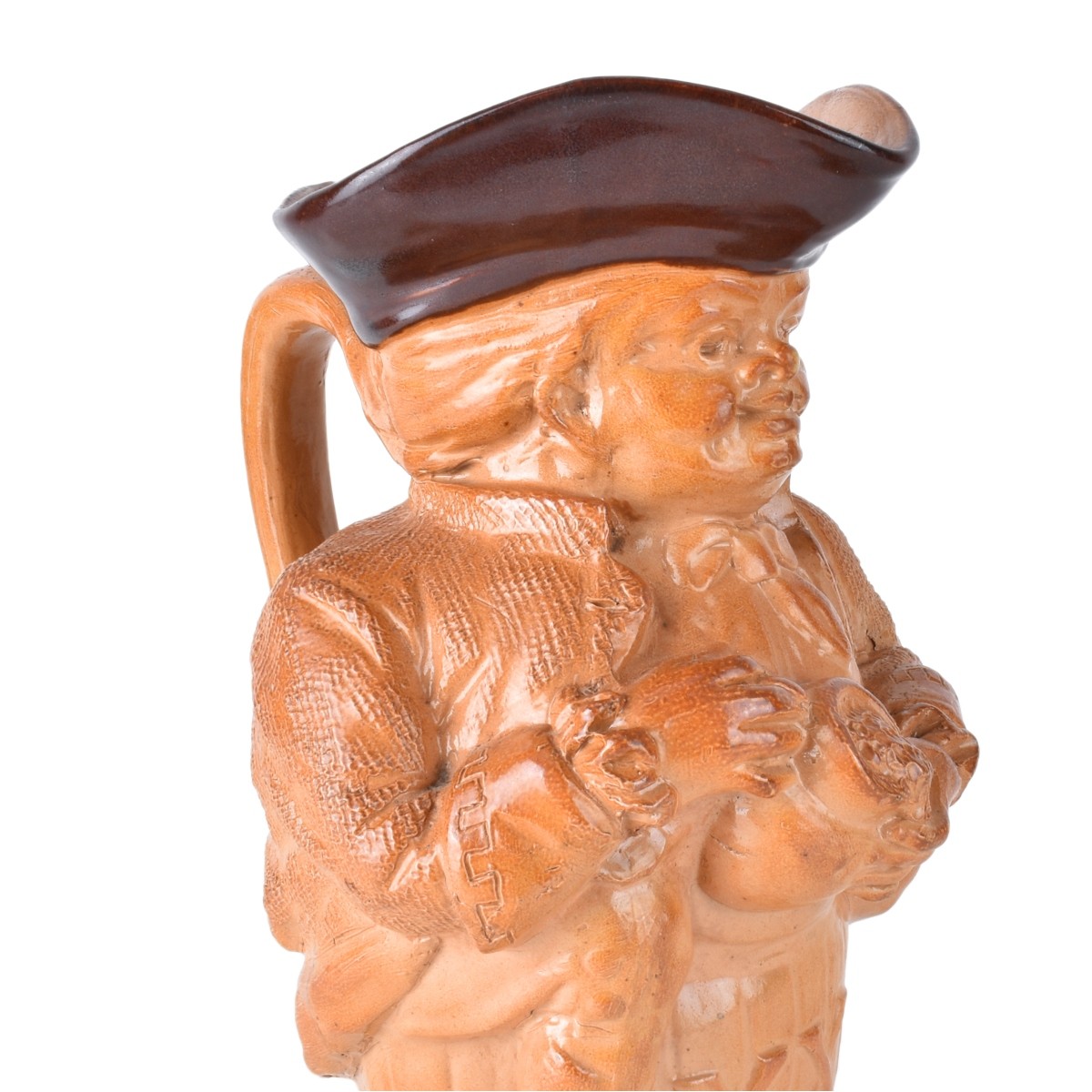 Royal Doulton Burslem Figural Salt Glazed Pottery Pitcher. Signed and numbered 169753/3726 to base. Measures 10" H. Condition: Good condition Estimate: $100.00 - $200.00 Domestic Shipping: $62.00