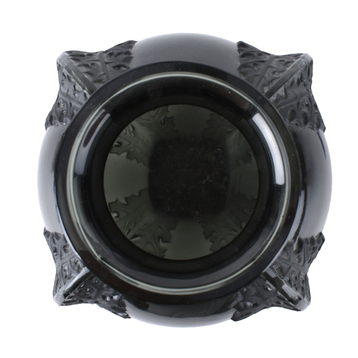 Rene Lalique Black Molded Crystal Vase. Signed "R. Lalique France" to base. Measures 7-1/2" H x 5-5/8" W. Condition: Light scuffs to base from display otherwise good condition Estimate: $800.00 - $1200.00 Domestic Shipping: $55.00