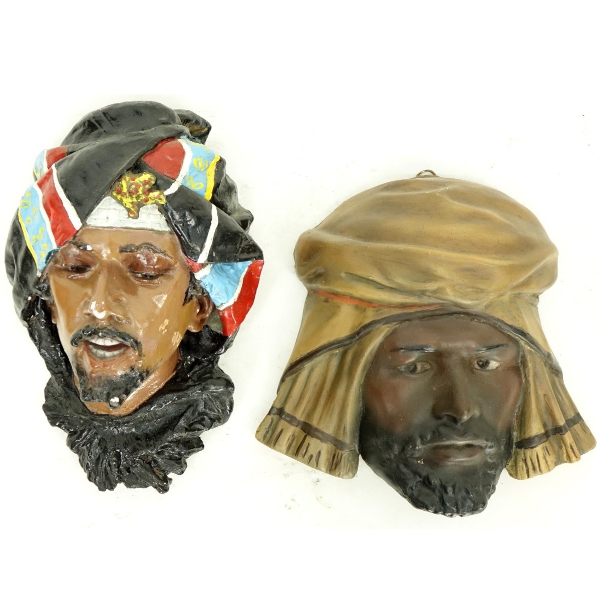 Two (2) Polychrome Arab Figural Heads