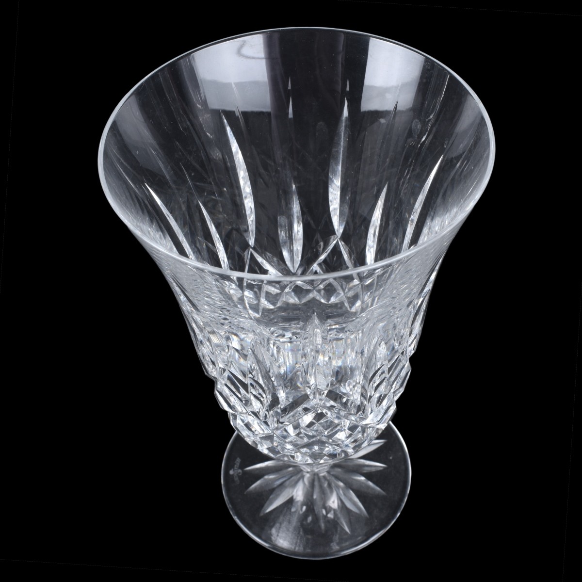 Six (6) Waterford Crystal Glasses. Includes: 4 fluted champagnes in the Kinsale pattern and two stemmed iced tea glasses in the Lismore pattern. Tallest measures 7-7/8" H, smallest measures 6-1/2" H. Condition: One fluted champagne glass has a nick to rim otherwise good condition Estimate: $50.00 - $100.00 Domestic Shipping: $68.00
