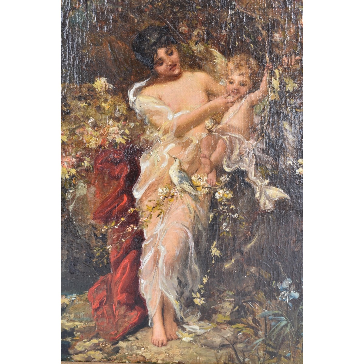 19/20th Century Oil on Canvas "Psyche". Unsigned. Measures 12" H x 8-1/4" W, frame measures 18-1/2" H x 15-1/2" W. Condition: Overall good condition. Craquelure Estimate: $600.00 - $800.00 Domestic Shipping: $125.00