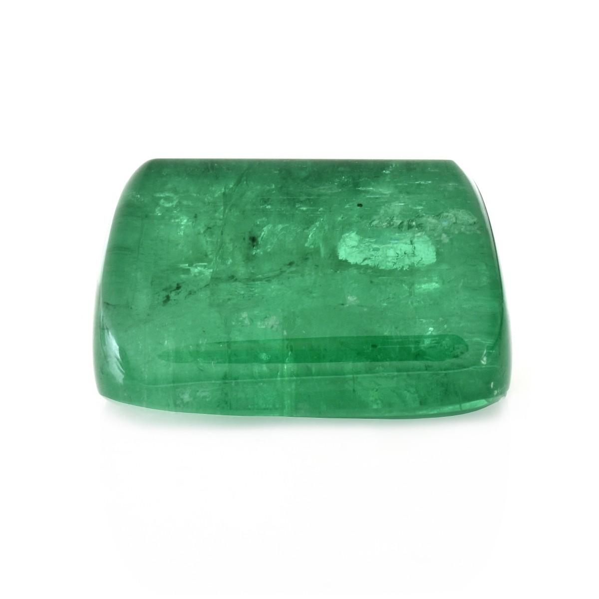 AGL Certified 170.21 Carat Russian Rectangular Pryamidal Cabochon Emerald. Emerald with vivid color. AGL Report CS 63841 dated 10/23/2014 to accompany this lot. Condition: Very good condition. Estimate: $5500.00 - $7500.00 Domestic Shipping: $30.00