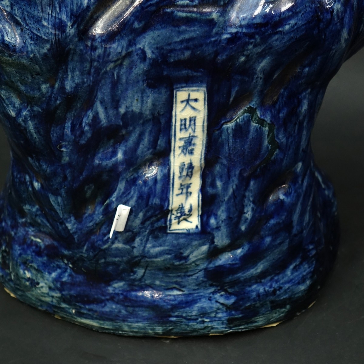 Large Chinese Blue and White Porcelain Guanyin Figurine. Signed on obverse side. Measures 32-3/8" H x 14" W. Condition: Crazing otherwise good condition Estimate: $400.00 - $600.00 Domestic Shipping: Third party