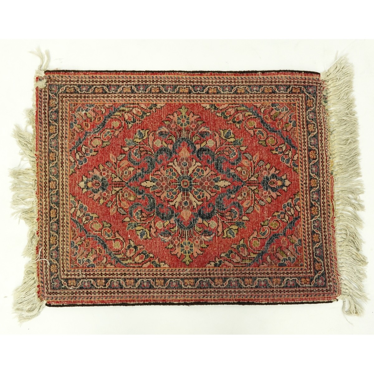 Group of Four (4) Semi Antique Oriental Rugs. Largest measures 37" H x 26" W, smallest measures 24-1/4" H x 18-1/2" W. Condition: Losses and stains to fringes, dirty, stains Estimate: $50.00 - $100.00 Domestic Shipping: $88.00