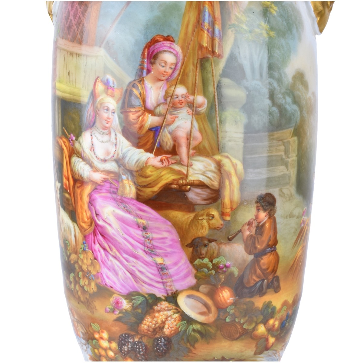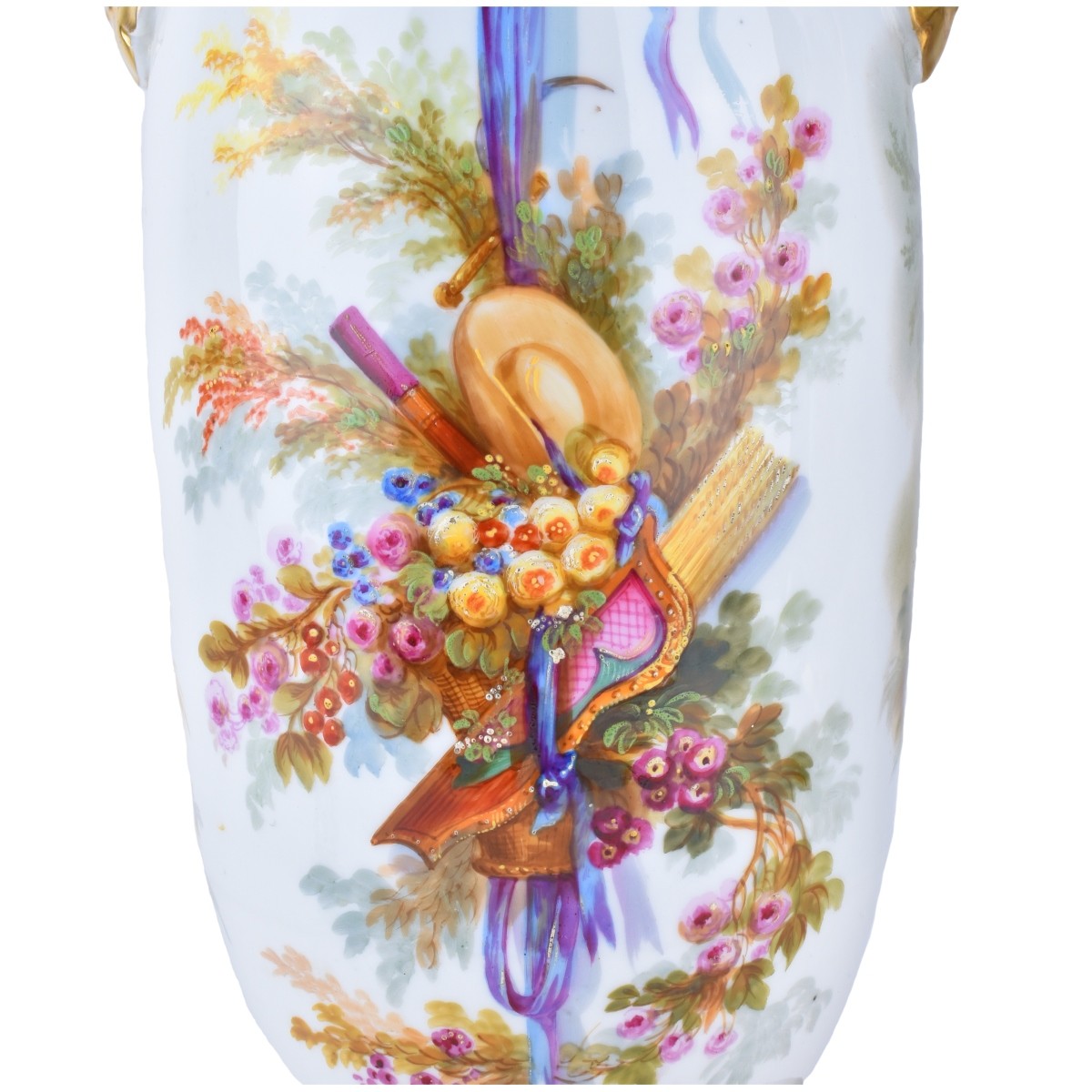 Pair of Old Paris Two Handle Porcelain Vases Mounted as Lamps. Vases measures 19-1/2" H, overall measures 28-1/8" H. Condition: Good condition Estimate: $1000.00 - $1500.00 Domestic Shipping: Third party