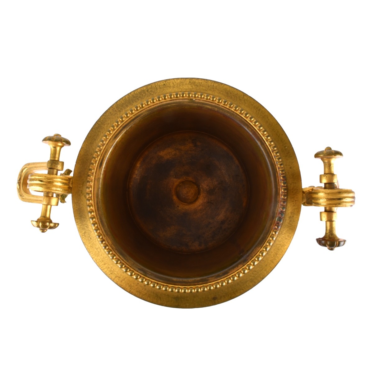 A Sevres style Blue Celeste Porcelain and Bronze Mounted Footed Bowl with Bijou. Decorated with a scene on front and obverse side. Measures 10-3/8" H x 8" W. Condition: Missing a few jewels otherwise good condition Estimate: $450.00 - $650.00 Domestic Shipping: $88.00