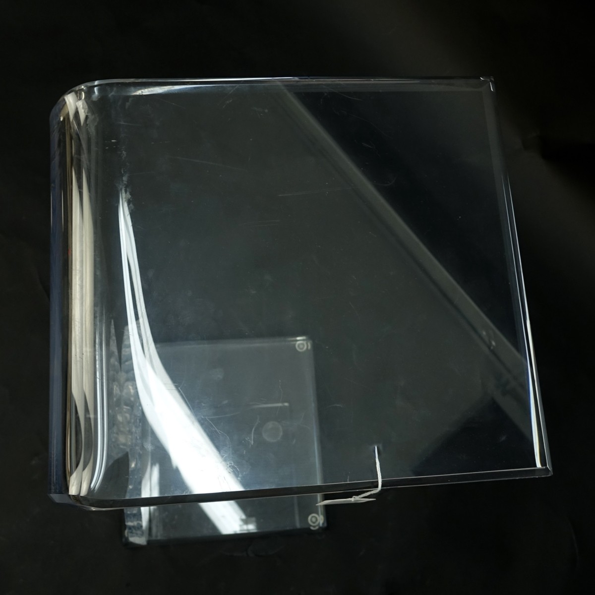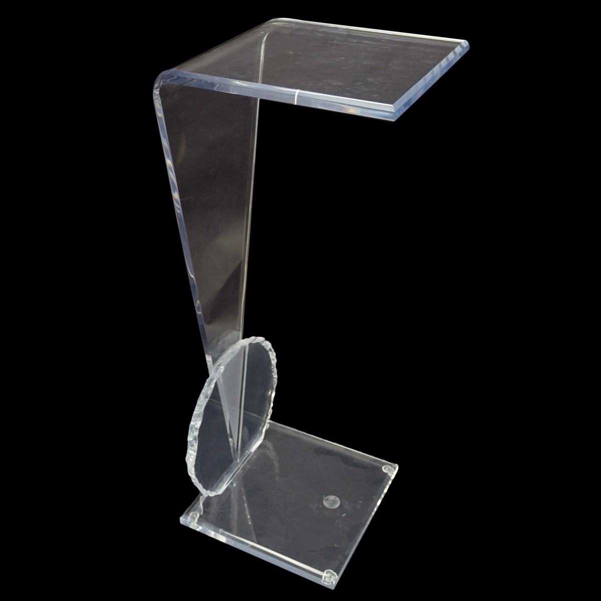 Tall Mid Century Modern Lucite Pedestal Stand. Measures 36" H x 13" W x 14-1/2" D. Condition: Lets scuffs otherwise good condition Estimate: $150.00 - $250.00 Domestic Shipping: Third party
