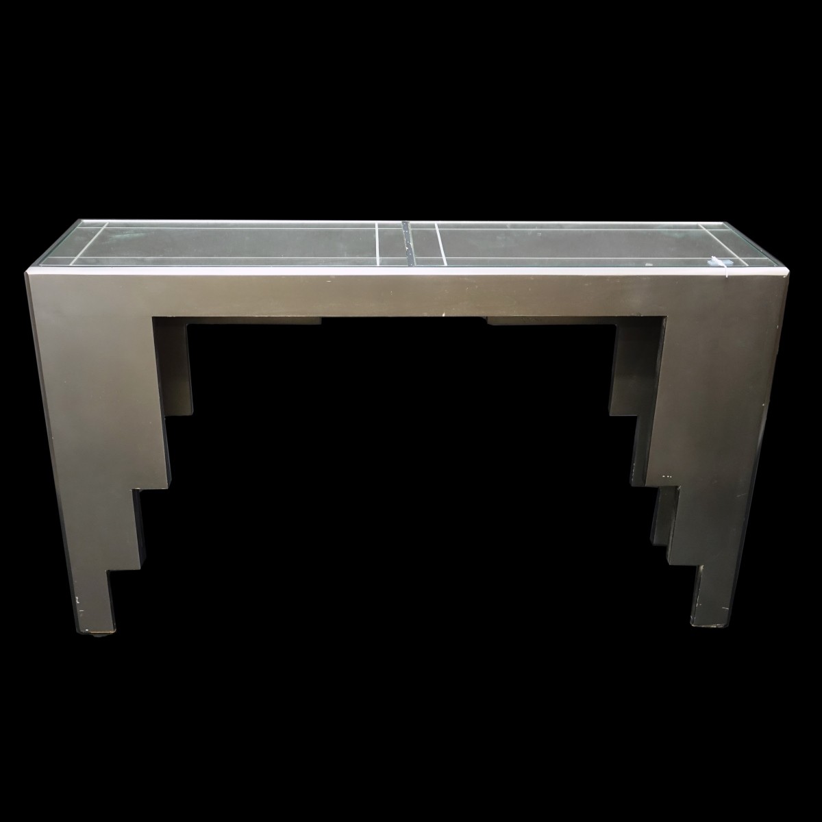 Mid Century Gampel-Stoll Style Skyscraper Mirrored Console Table. Measures 31" H x 53-1/4" W x 14" D Condition: Some scuffs to wood Estimate: $200.00 - $400.00 Domestic Shipping: Third party