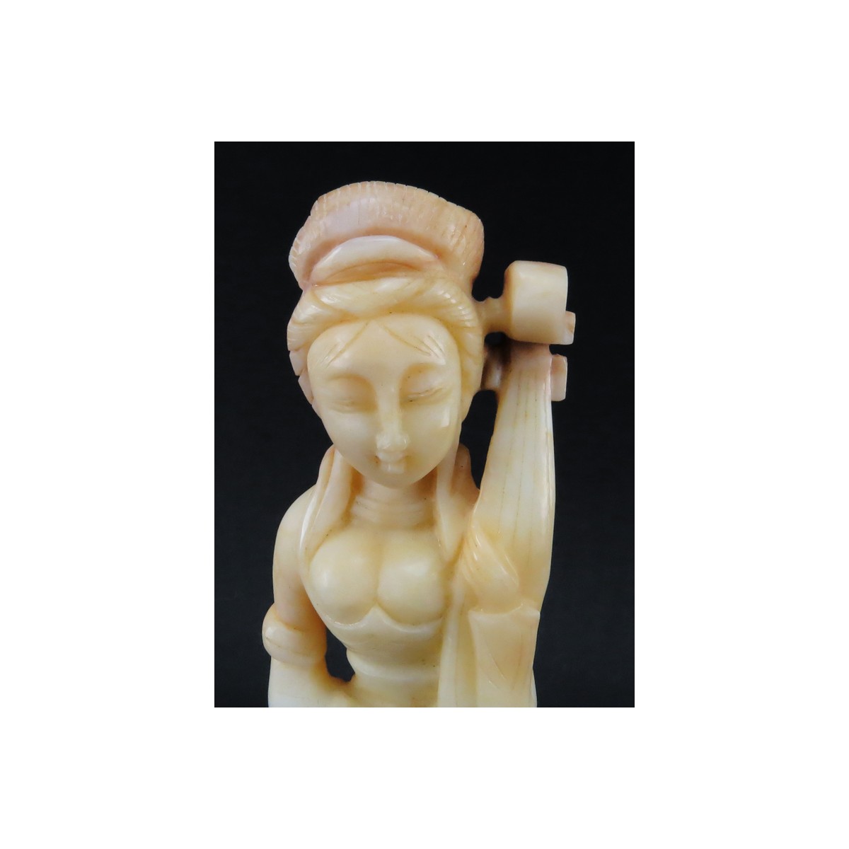 Vintage Chinese Carved Shoushan Figure Of A Woman. Unsigned. Minor edge chips or in good condition. Measures 7-1/8". (estimate $50-$100) Shipping $32.00