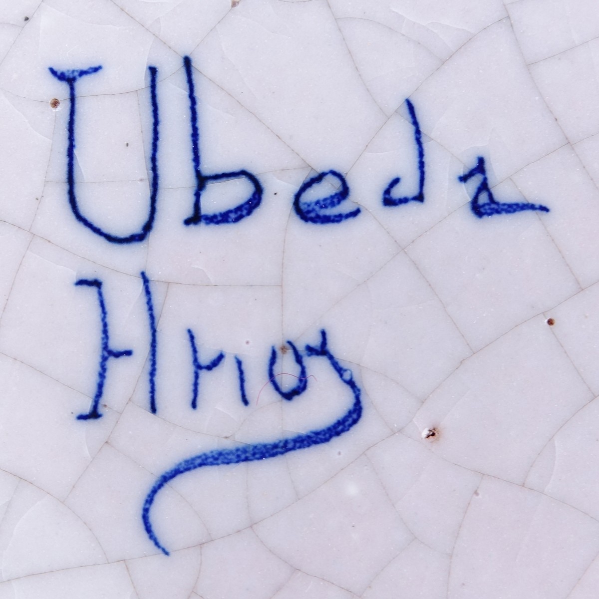 Lot of Four (4) Blue & White Pottery Bowls. Various signatures. One with edge glaze chips. Largest measures 12" Dia. (estimate $50-$100) Shipping $85.00
