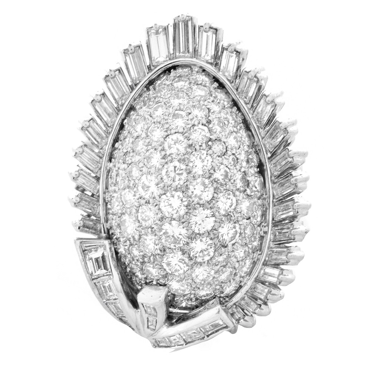 Vintage Approx. 4.0 Carat Pave Set Round Brilliant Cut Diamond, Baguette Cut Diamond and 18 Karat White Gold Ring. Diamonds H color, VS2 clarity. Ring size 9. Approx. weight: 14.1 grams. Condition: Very good vintage condition. Estimate: $2500.00 - $3500.00 Domestic Shipping: $28.00