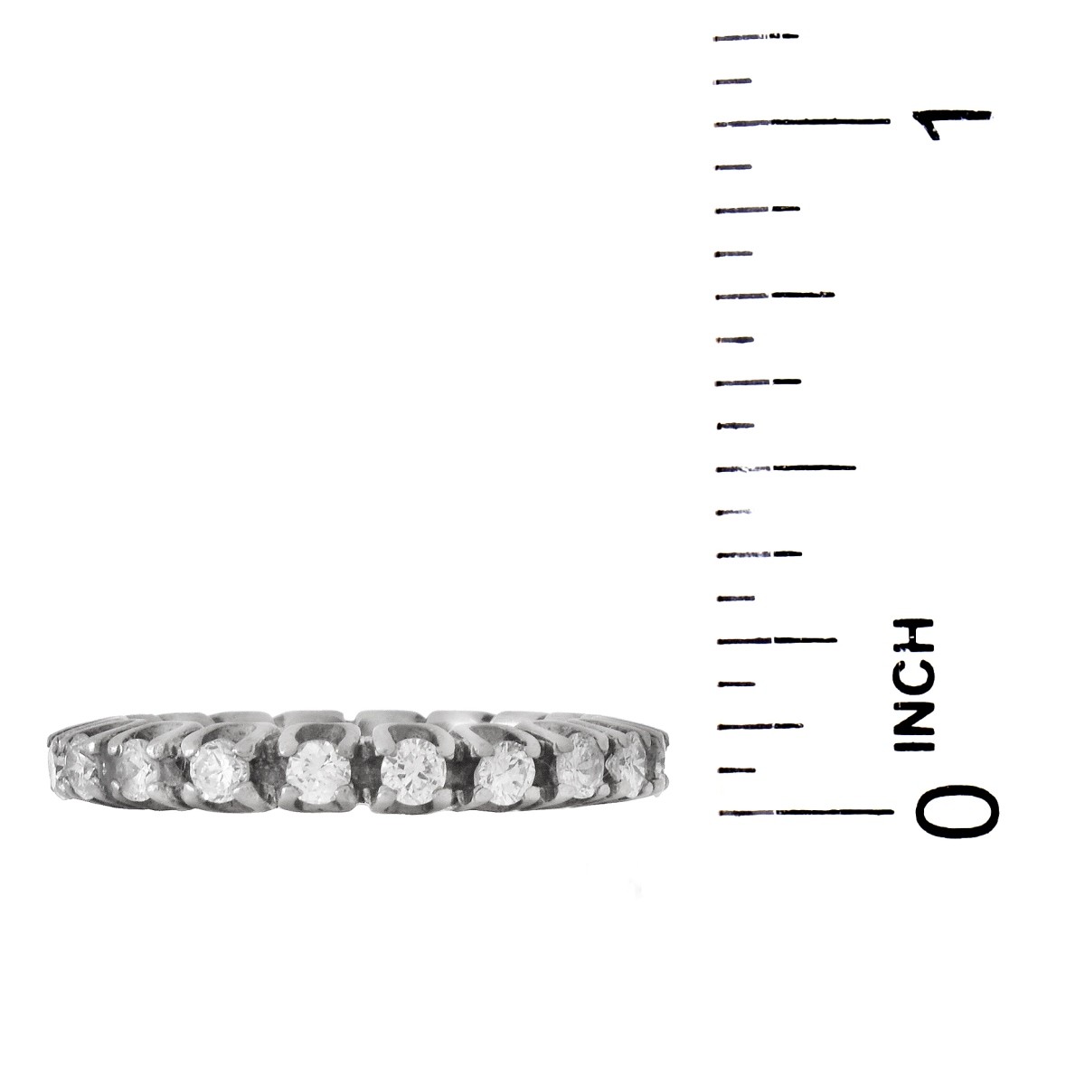 Vintage Approx. 1.0 Carat Round Brilliant Cut Diamond and 14 Karat White Gold Eternity Band. Diamonds H color, VS2-SI1 clarity. Ring size 7. Approx. weight: 3.0 grams. Condition: Good vintage condition. Estimate: $800.00 - $1000.00 Domestic Shipping: $28.00