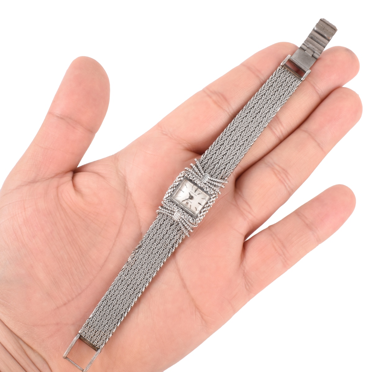 Lady's Vintage Rolex Precision Bracelet Watch with Manual Movement, 18 Karat White Gold case and Stainless Steel Bracelet. Case back stamped 18K. Case measures 16.5mm x 15.0mm; bracelet measures 6-1/2" L. Condition: Small area of loss / damage to bracelet. Running. Please note the gallery does not warranty the running condition of watches. Estimate: $400.00 - $600.00 Domestic Shipping: $32.00