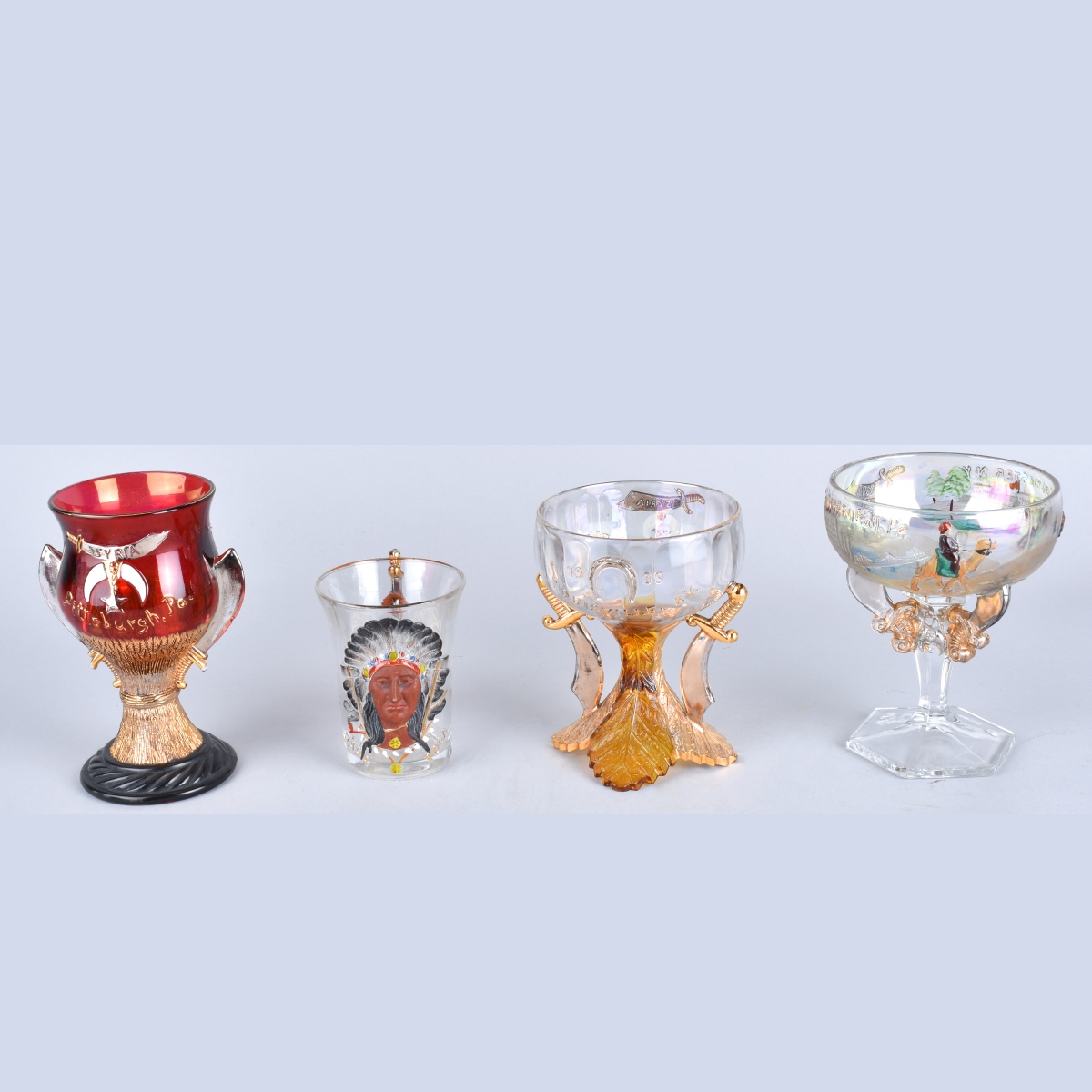 Four Antique Masonic Glassware