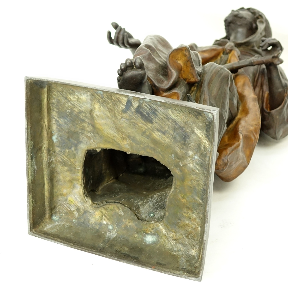 After: Anatole Guillot, French (1865 - 1911) Antique Polychrome Spelter Orientalist Male Figure. Signed. Measures 30-3/8" H x 13-1/2" W. Condition: Rubbing Estimate: $500.00 - $1000.00 Domestic Shipping: Third party