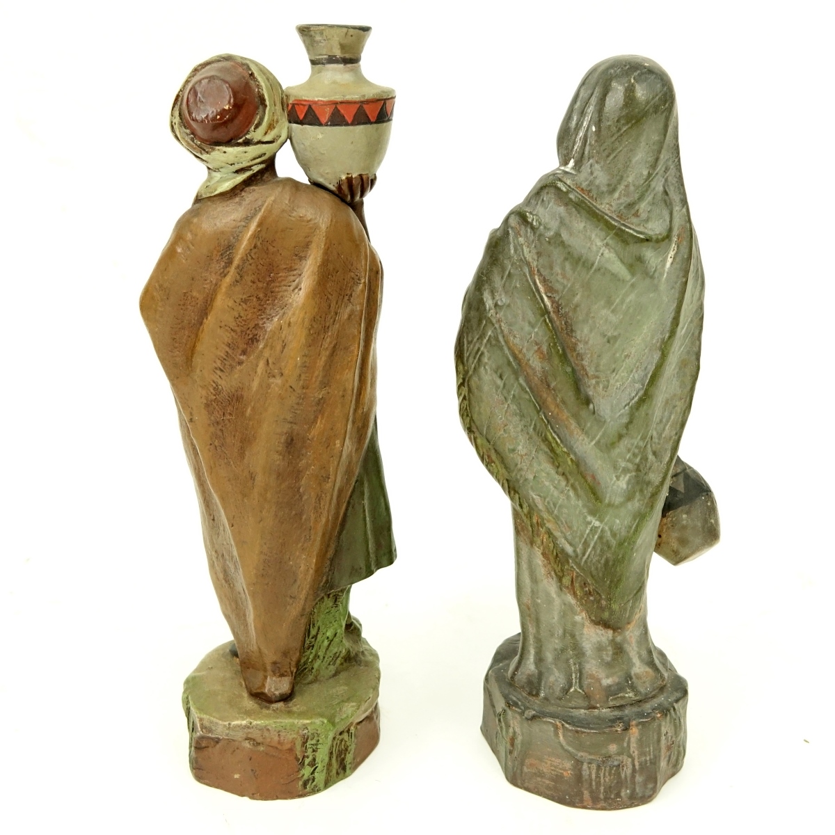 Two (2) Vintage Polychrome Pottery Bedouin Male and Female Figures. Unsigned, numbered to base. Measures 9-3/4" H. Condition: Small nicks Estimate: $100.00 - $200.00 Domestic Shipping: $68.00