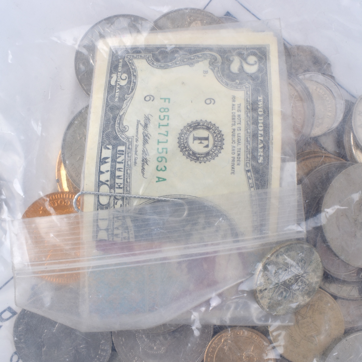 17+ pound mixed coin lot. Includes American and foreign coins, including 10 Euros and tokens. The lot is in a sealed unopened "Fraudstopper" bag, which the gallery received directly "as is" from the consignor. We are offering this exciting "mystery lot" as is and will not tamper with the bag. Provenance: Inventory of a Jewelry Manufacture Supplier. Condition: AS IS - we will not open the sealed bag. These Coins ARE NOT Professionally Graded, We DO NOT Grade Coins, Please View Photos and/or Information to Make your Own Value Judgment as to the Condition of these Coins. Estimate: $100.00 - $200.00 Domestic Shipping: Upon Request