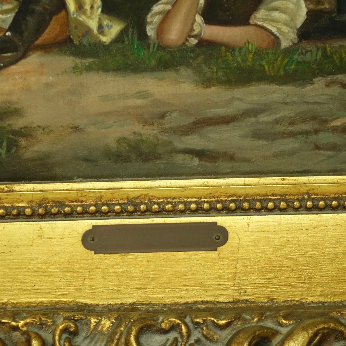 M. Delort (19/20th Century) Oil on Canvas, Children in Outdoor Scene, Signed Lower Right. Measures 12-1/4" H x 16" W, frame measures 20-1/2" H x 24-1/2" W. Condition: Good condition Estimate: $300.00 - $500.00 Domestic Shipping: $145.00