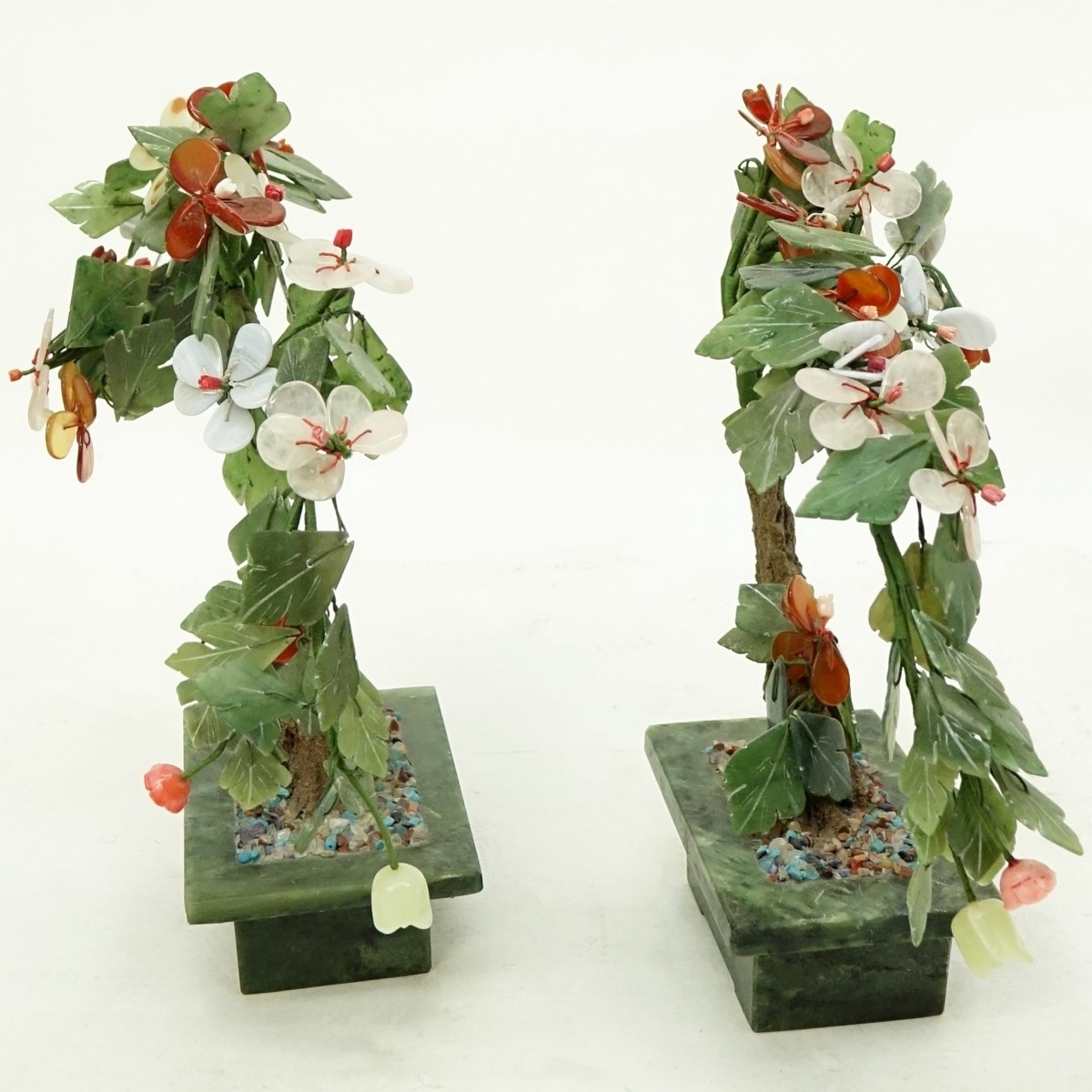 Pair of Chinese Ming Style Hardstone and Jade Trees. Measures 10-3/4" H x 11" W. Domestic Shipping: Third party Condition: Good condition Estimate: $100.00 - $200.00 Domestic Shipping: Third Party