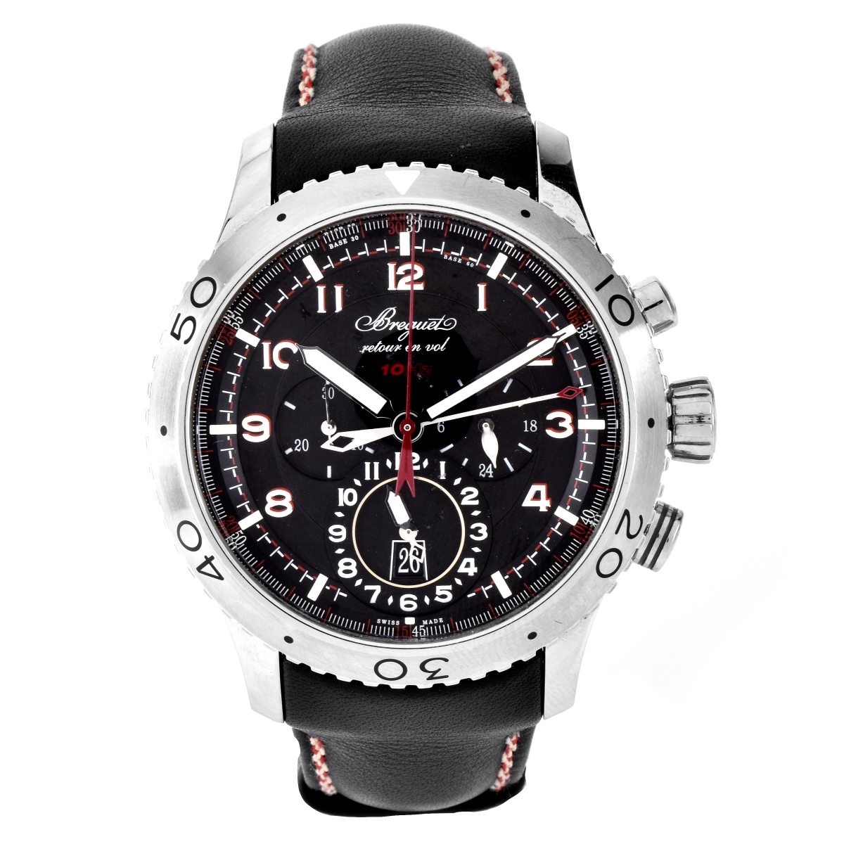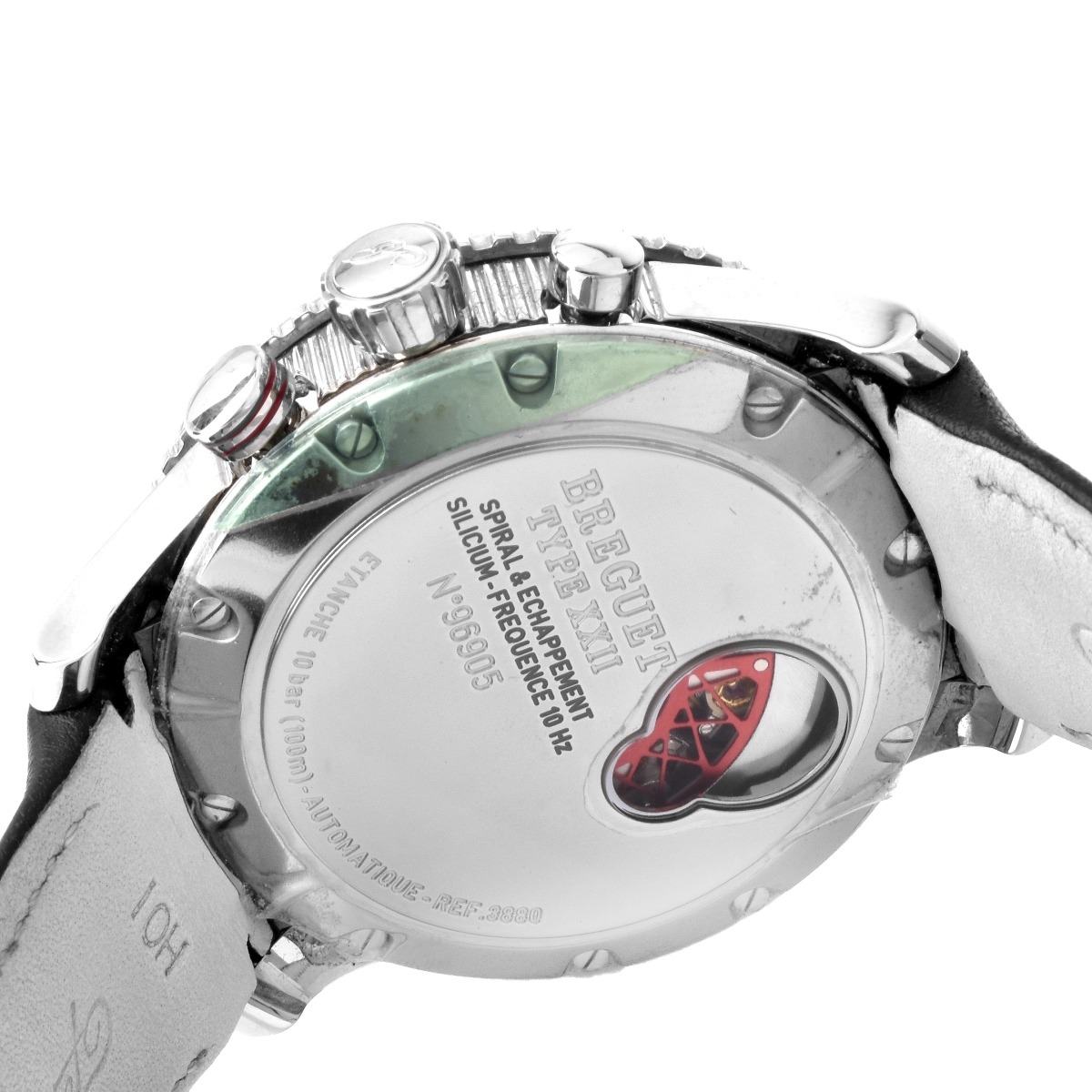 Men's Breguet Type XXII 45mm Stainless Steel Watch. Automatic Movement wth Flyback Chronograph, Date Indicator and GMT Complications, Black Dial, Leather Strap with Deployment Buckle. Number 96905. Condition: As New condition. Please note the gallery does not warranty the running condition of watches. Estimate: $4500.00 - $6500.00 Domestic Shipping: $32.00