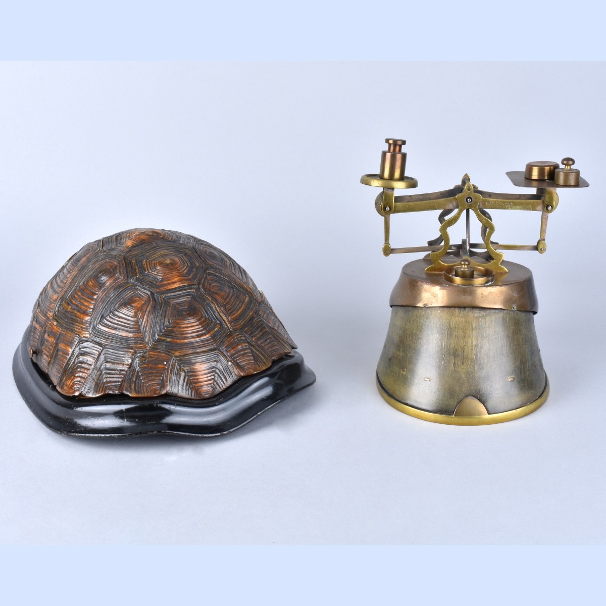 Antique Turtle Shell Box and Natural Hoof Scale. Box unsigned, Hoof signed. P. Spicer & Sons Leamington. Turtle shell box measures 4-1/2" H x 9-1/2" x 7-3/4", Scale measures 5-1/2" H x 5-1/2" x 4-3/4". We Will Not Ship This Item Out of State of Florida. Anyone Having This Item Shipped Must Have a Florida Address or the Item will not be Shipped. We will Not Knowingly Sell Endangered Species outside of Legal Channels. Condition: Good condition. We Will Not Ship This Item Out of State of Florida. Anyone Having This Item Shipped Must Have a Florida Address or the Item will not be Shipped. We will Not Knowingly Sell Endangered Species outside of Legal Channels. Estimate: $50.00 - $100.00 Domestic Shipping: $72.00