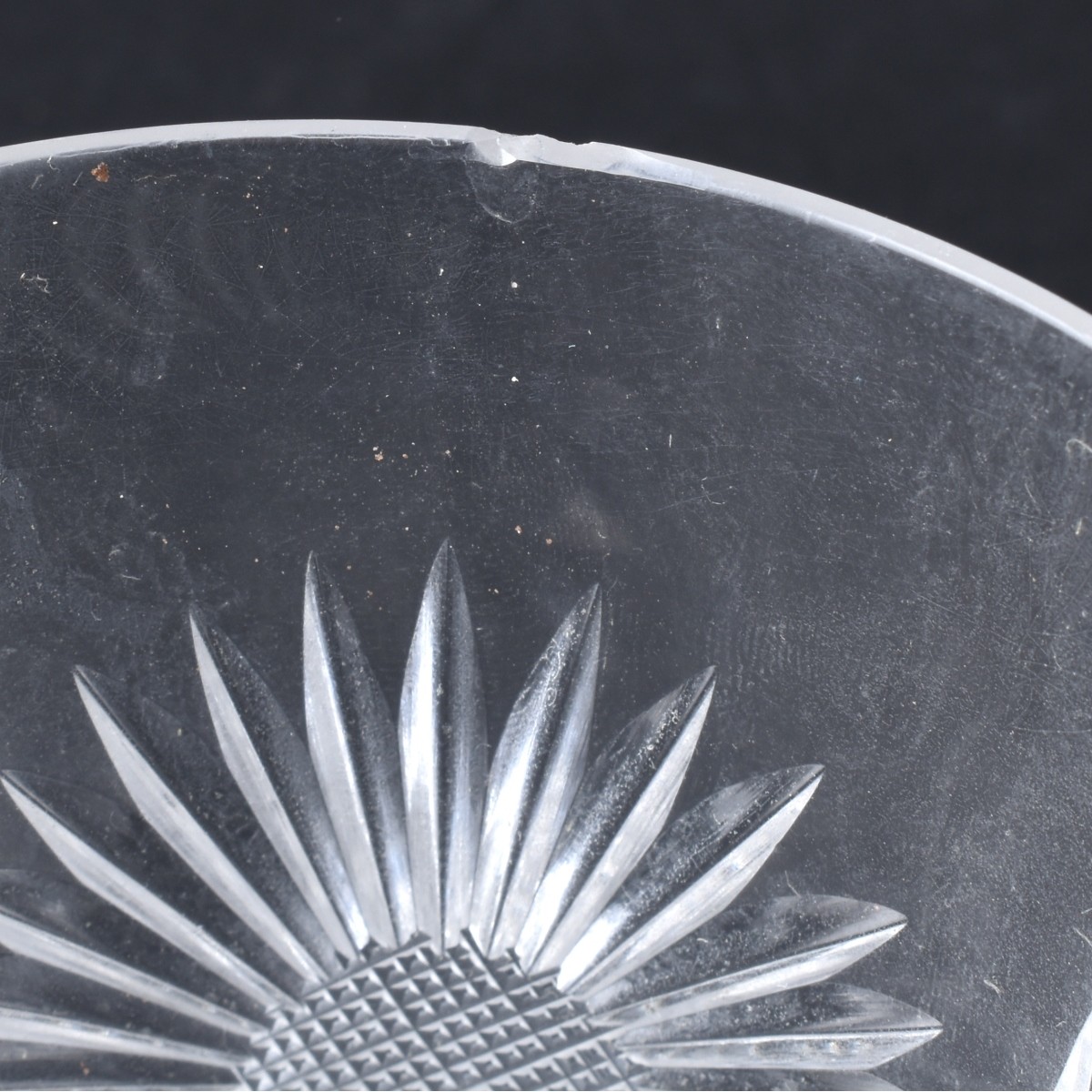 Six (6) Piece American Brilliant Cut Set. Comprised of one pitcher and 5 tumblers. Unsigned. Pitcher measures 8-3/4" H x 8-1/2" W, tumblers measures 3-3/4" H x 3" dia. Condition: Pitcher and one tumbler has a chip to rim Estimate: $50.00 - $150.00 Domestic Shipping: $95.00