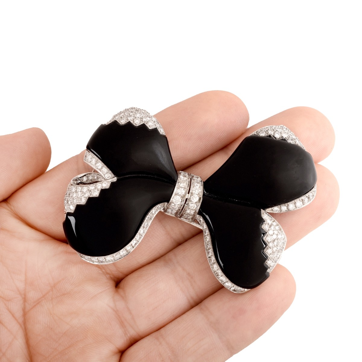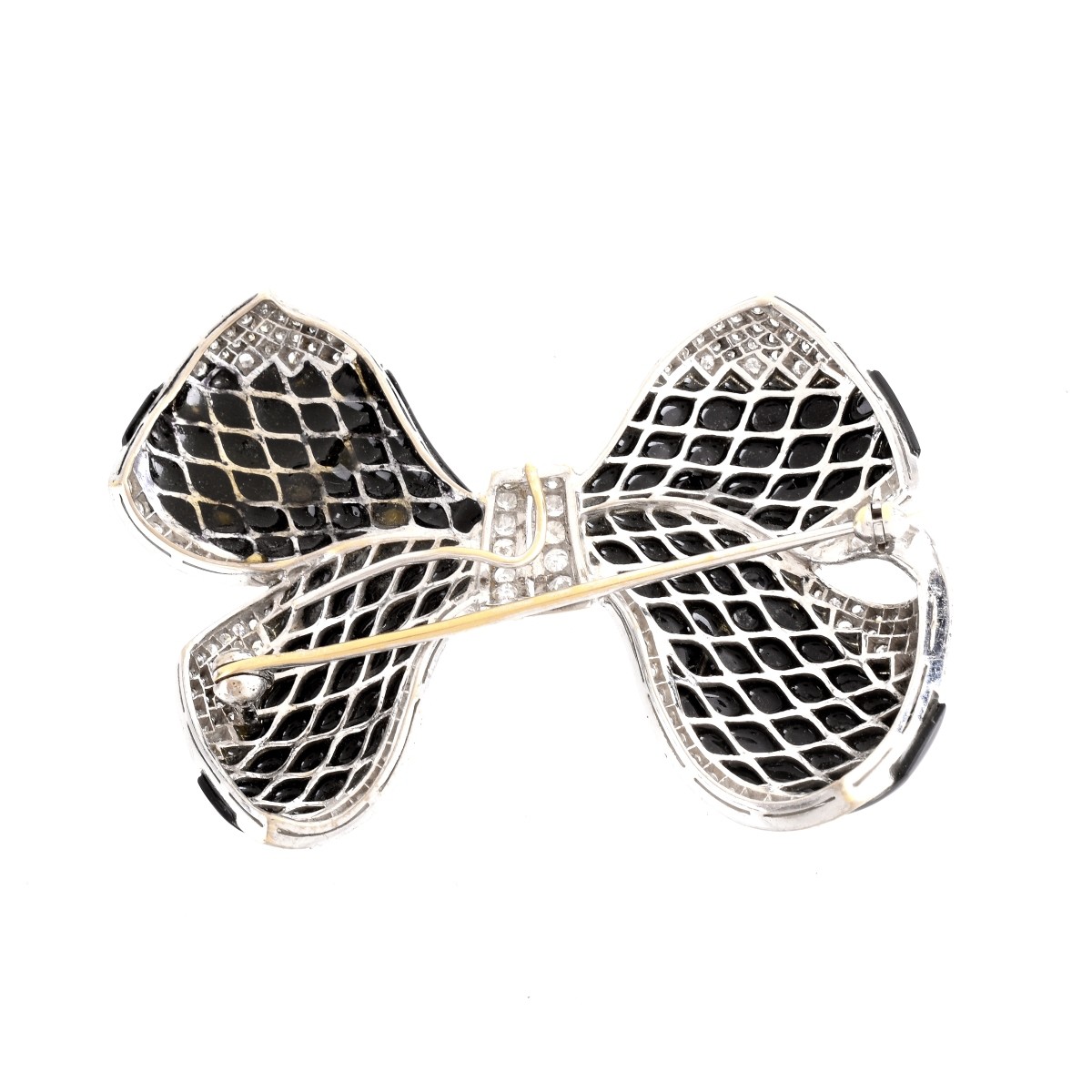 Art Deco Diamond, Onyx, Platinum Bow Brooch