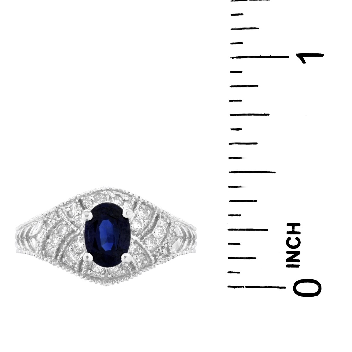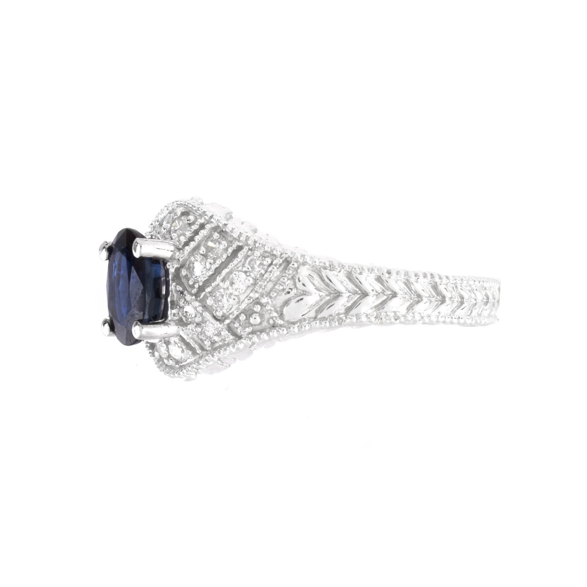 Approx. .50 Carat Oval Cut Sapphire, .20 Carat Pave Set Round Brilliant Cut Diamond and 14 Karat White Gold Ring. Ring size 7. Approx. weight: 5.2 grams. Condition: Very good condition. Estimate: $800.00 - $1000.00 Domestic Shipping: $28.00