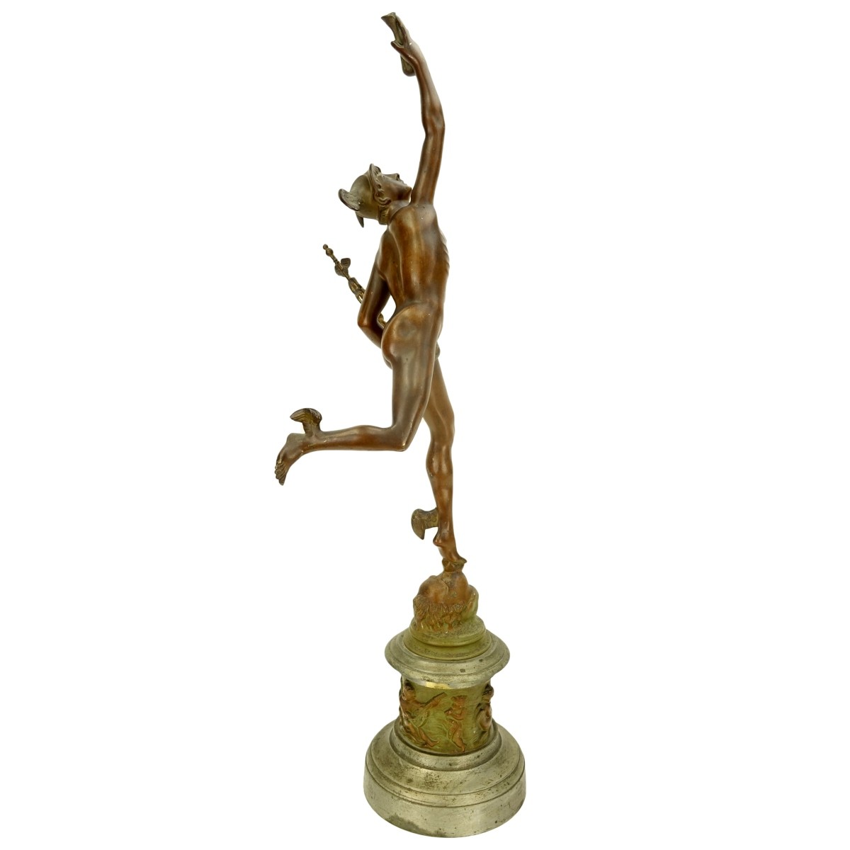 After: Giambologna, Italian (1529 - 1608) French Metal Sculpture "Mercury" Unmarked. Measures 27" H. Condition: Rubbing and oxidation to surface Estimate: $150.00 - $250.00 Domestic Shipping: Third party