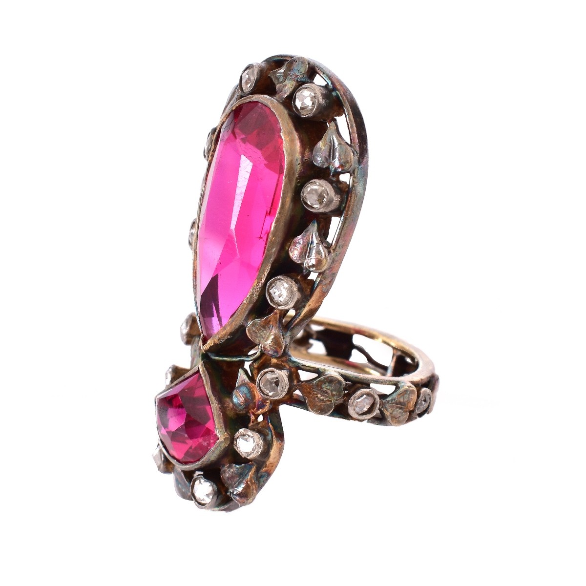 Antique Diamond Man Made Ruby, Silver & Gold Ring
