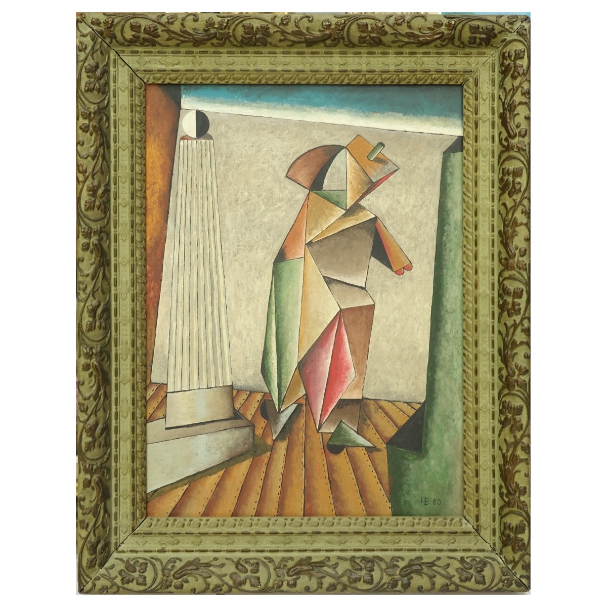 Mid-Century oil on board "Cubist Figure Of A Woman". Initialed and dated HB 60. Measures 19-3/4" x 15-1/4", frame measures 24-1/2" x 20" Condition: Good condition. Estimate: $200.00 - $400.00 Domestic Shipping: $165.00